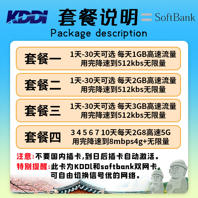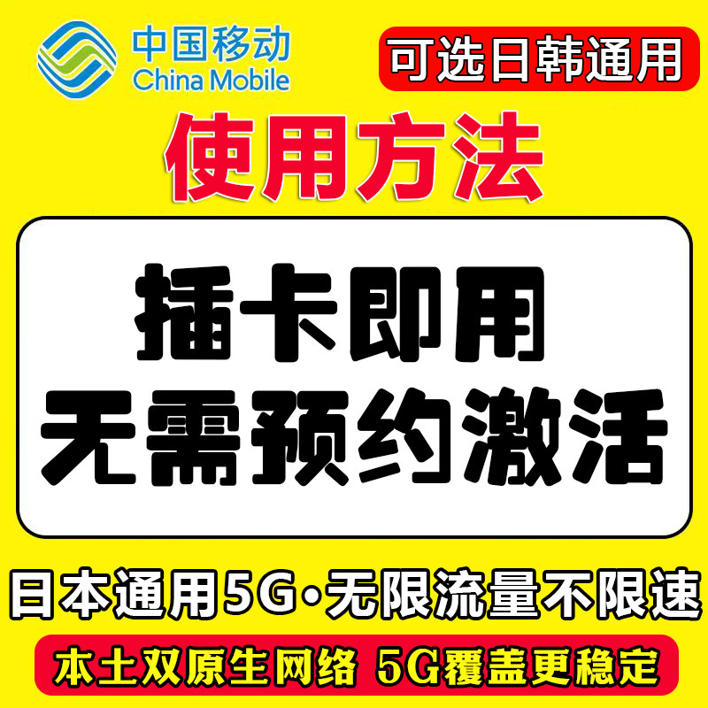 📚 吟游通信5G日本东京大阪冲绳北海道全国用 6天上网无限流量电话卡