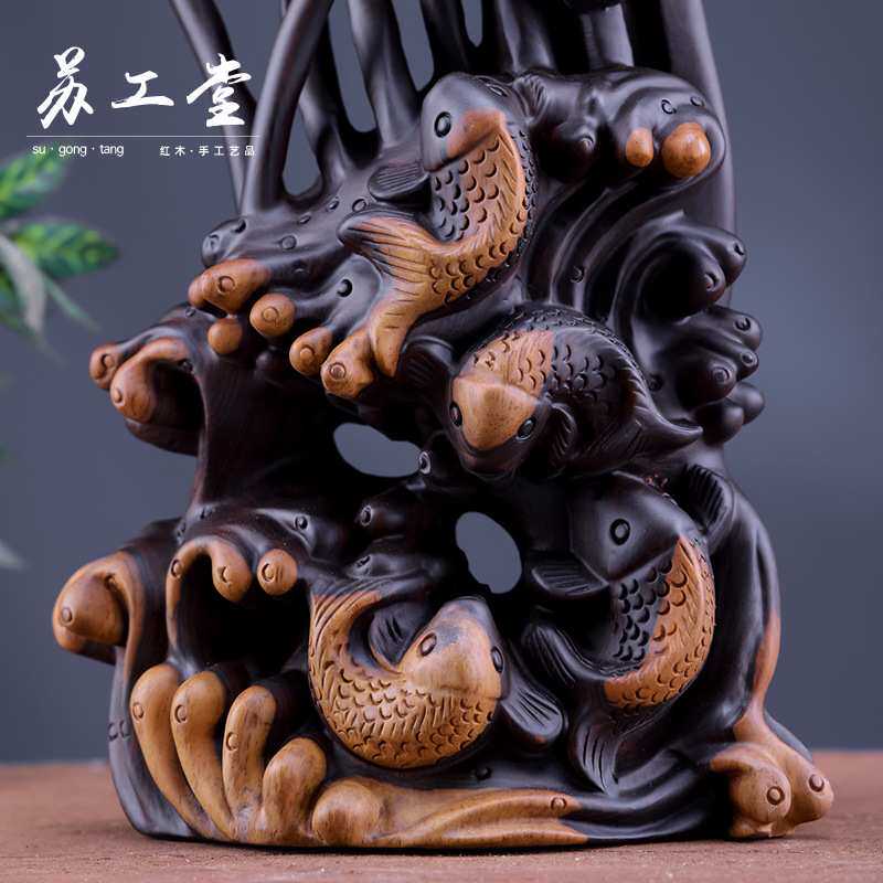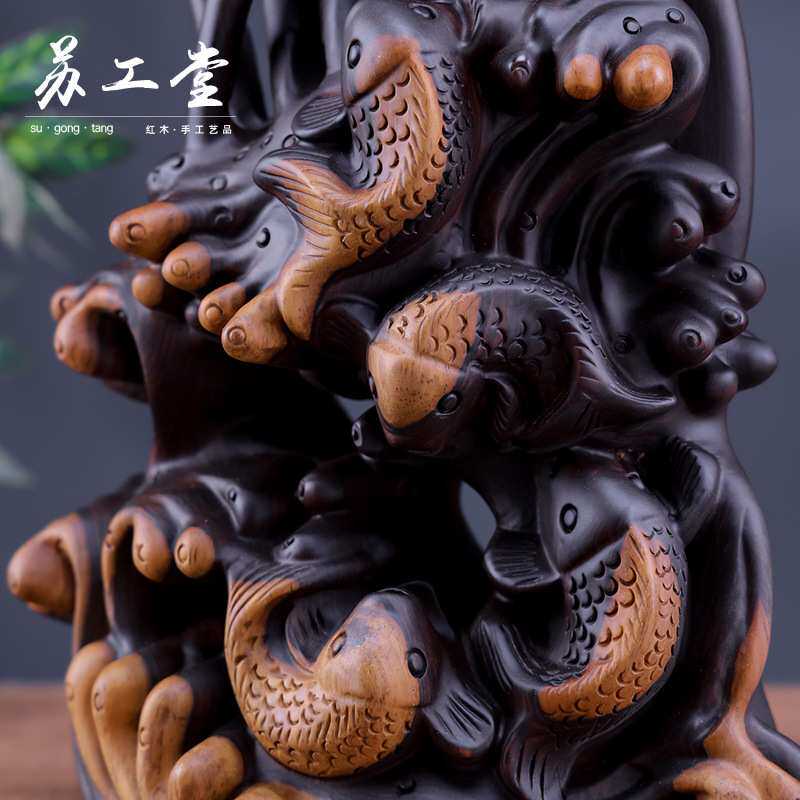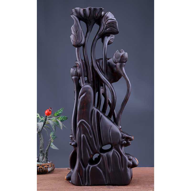 📚 创意非洲黑檀木连年有余摆件莲花莲蓬木雕室内客厅办公工艺品摆设