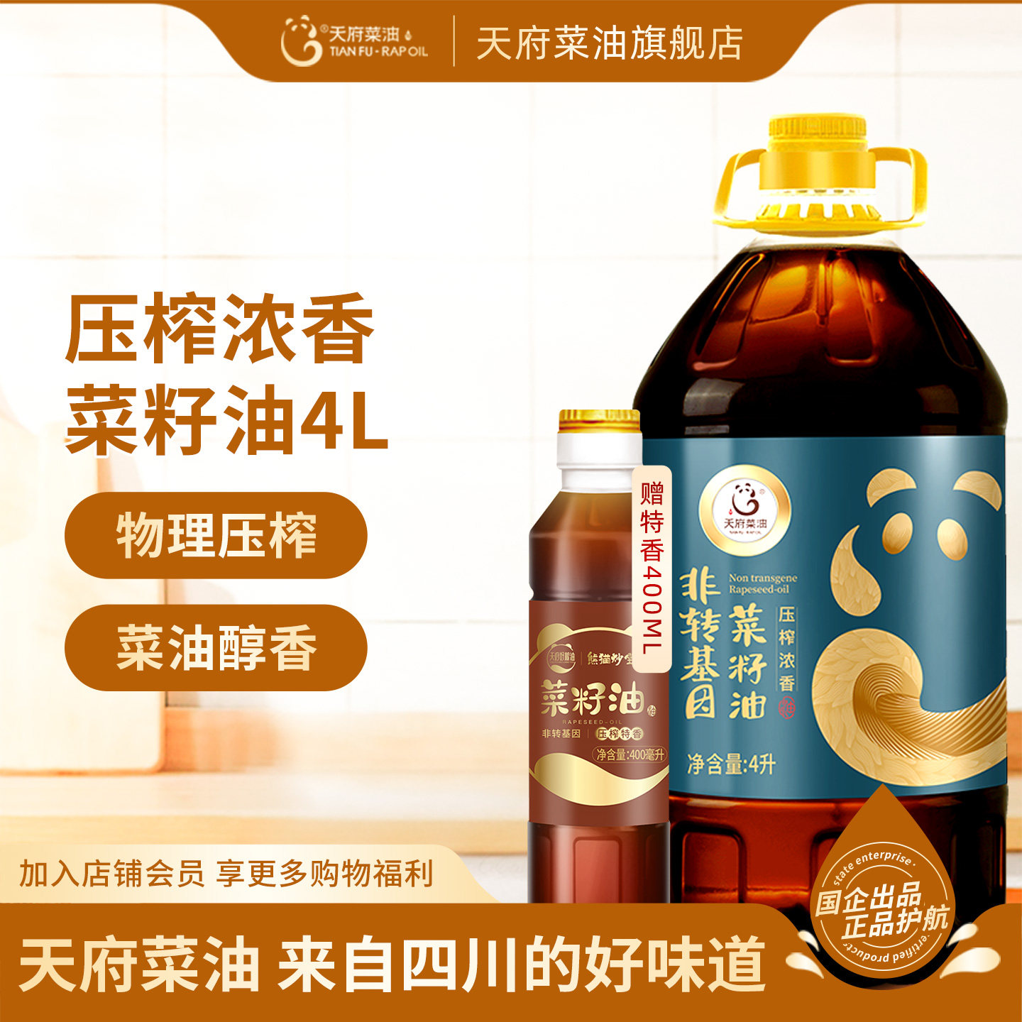 📚 天府菜油压榨浓香菜籽油4L非转基因100%纯正菜油植物油食用油正品