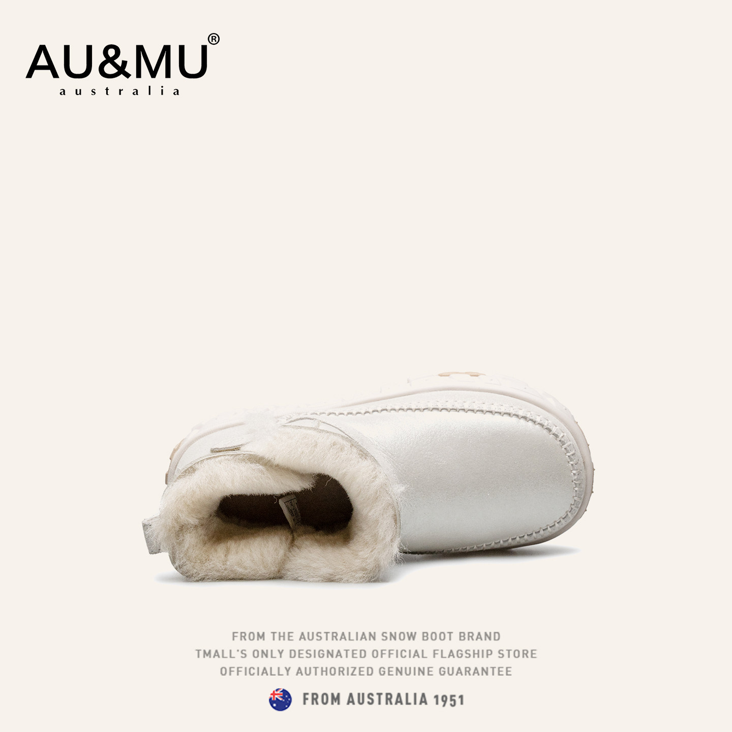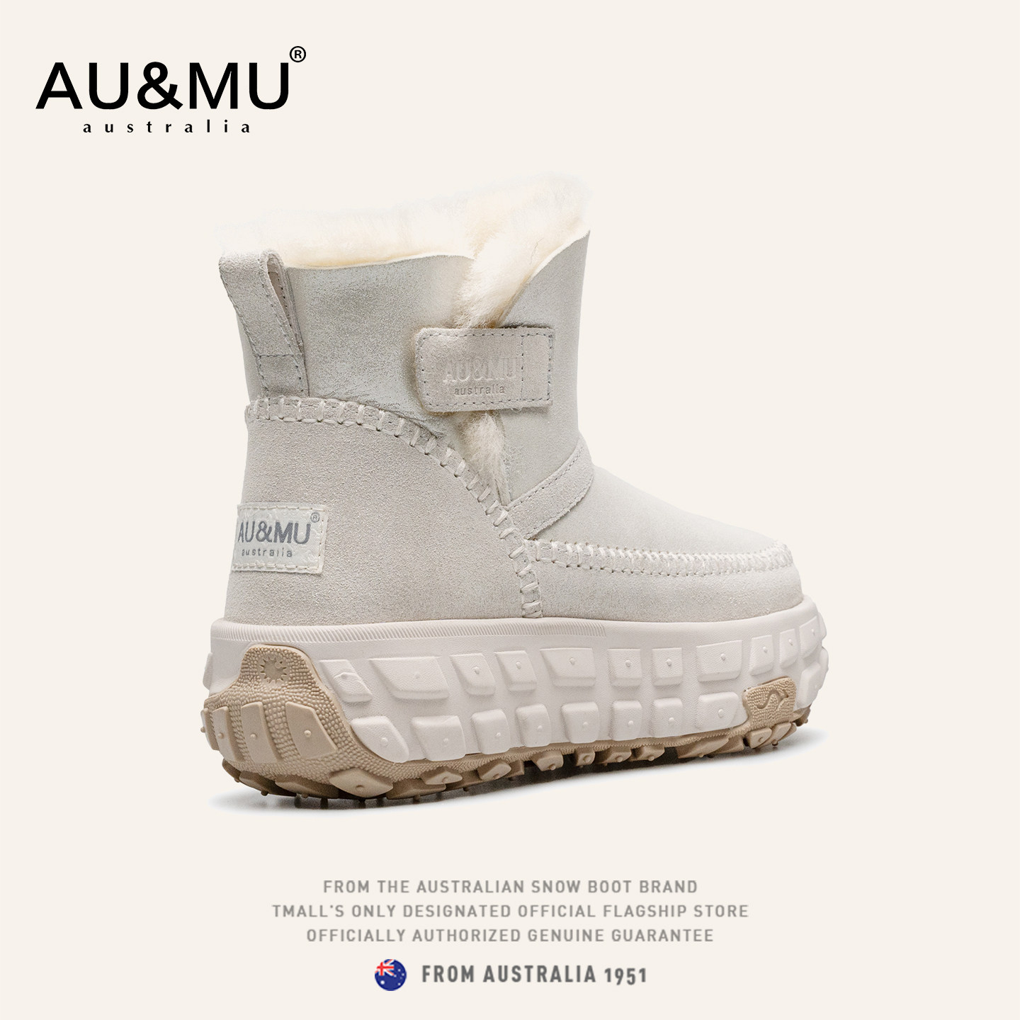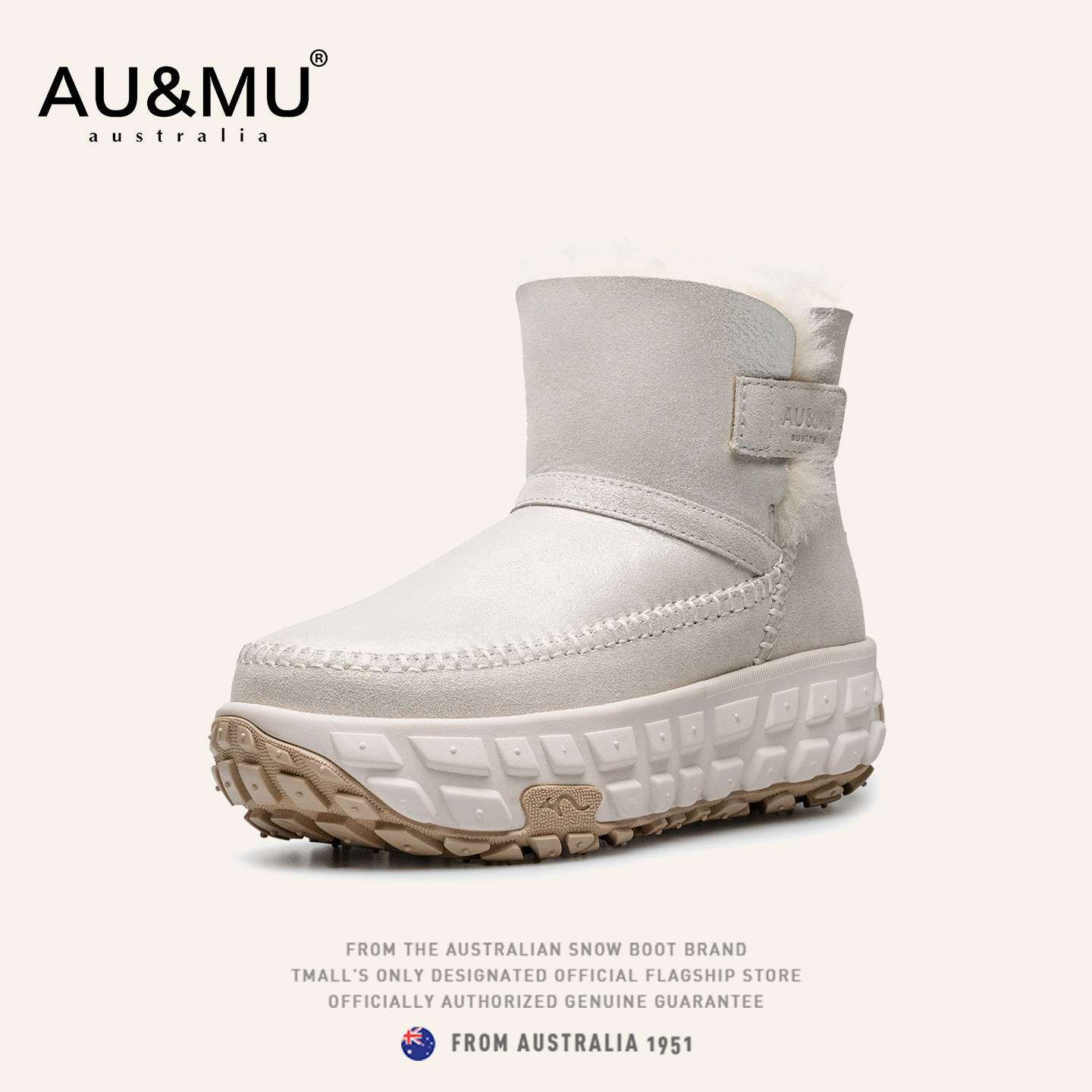 📚 AUMU2025冬季新品舒适轮胎皮毛一体雪地靴女白月光防水保暖中筒靴