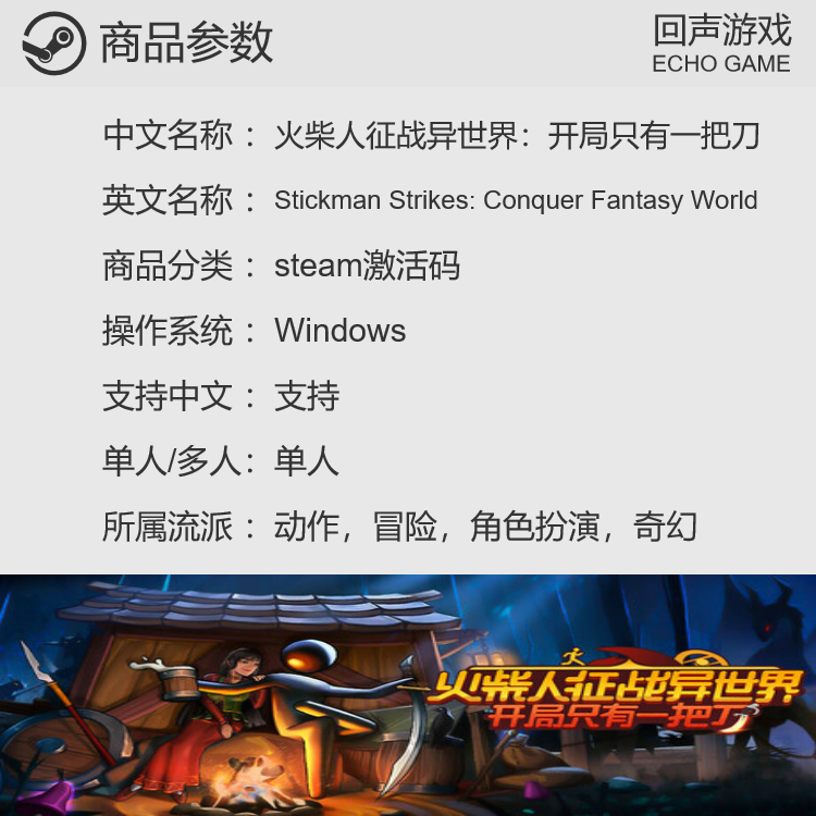 📚 Steam正版国区 火柴人征战异世界:开局只有一把刀 cdkey现货入库