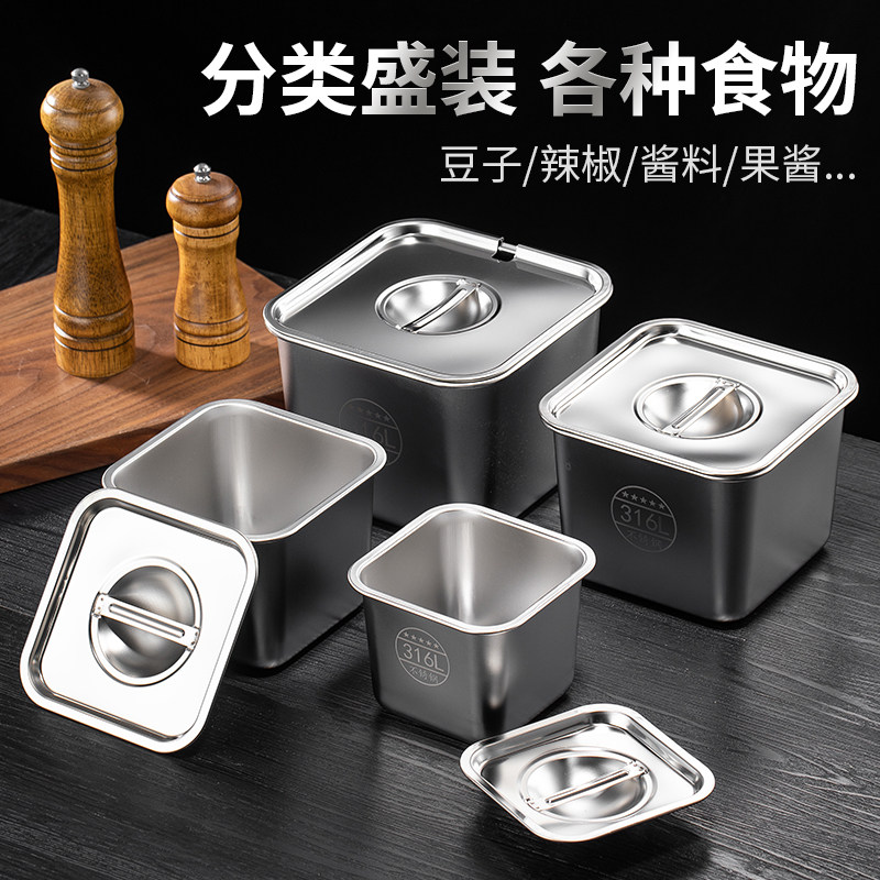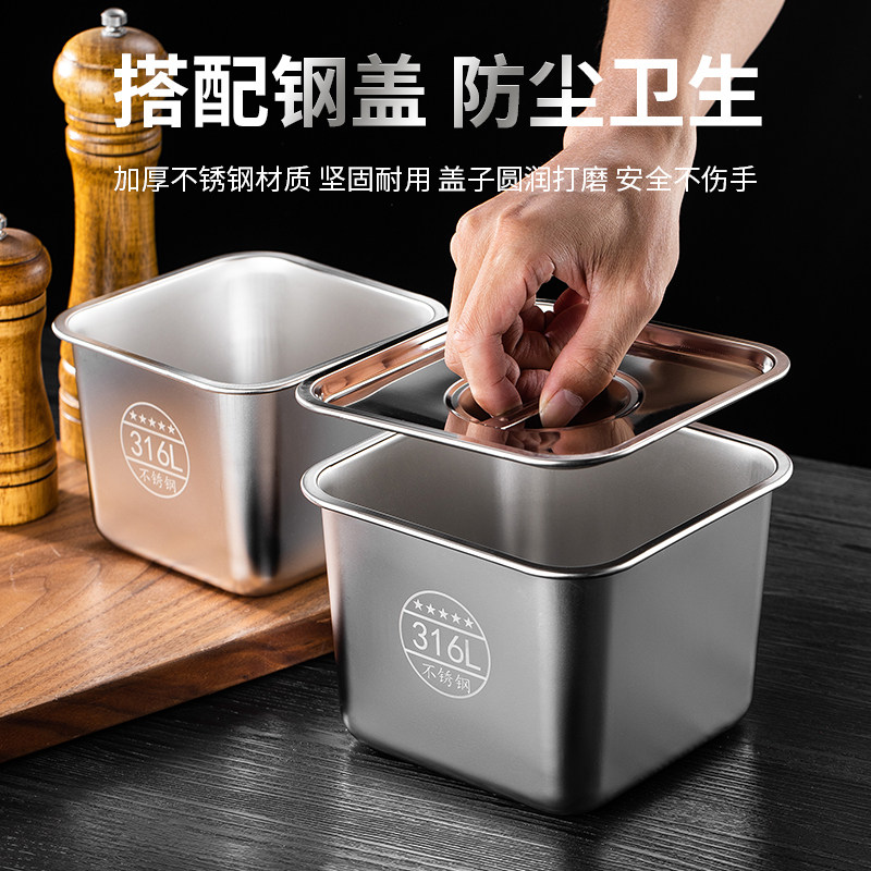 📚 316L不锈钢调料罐商用猪油罐子带盖料缸佐料方形味盅辣椒油调料盒