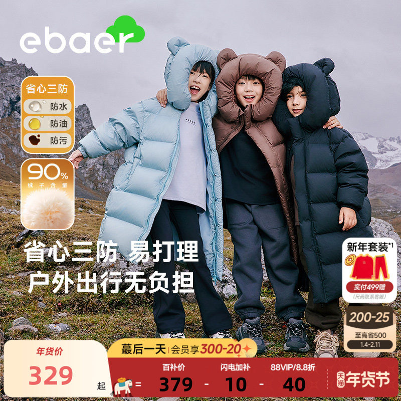 📚 EBAER儿童羽绒服长款加厚冬季新款男童女童90白鸭绒冬装保暖外套