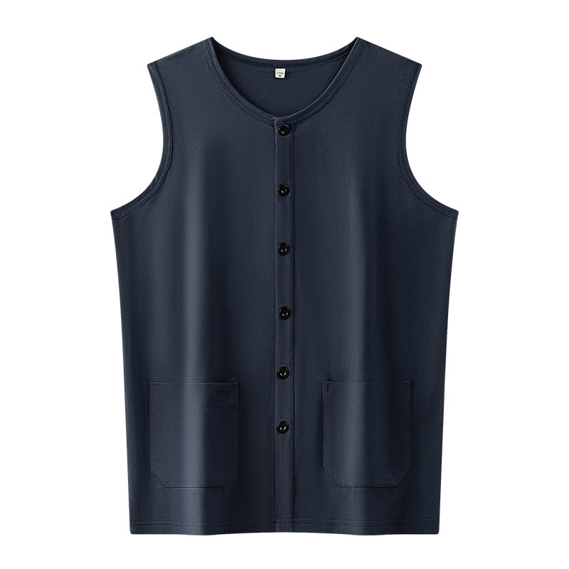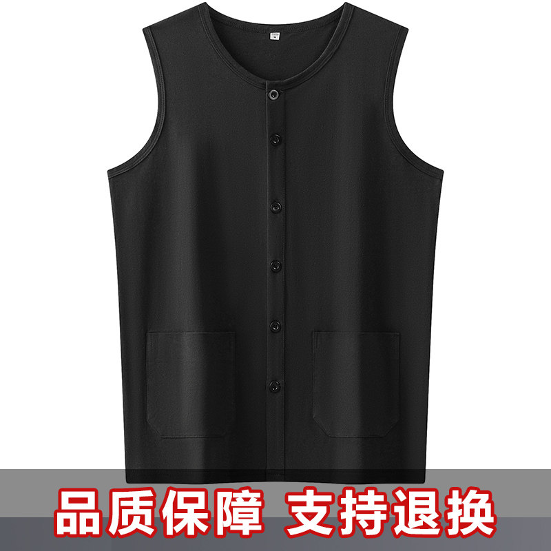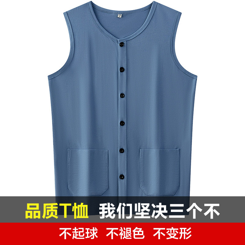 📚 申本薄款开衫男士高档纯棉背心夏季无袖马甲中老年汗衫老头衫坎肩