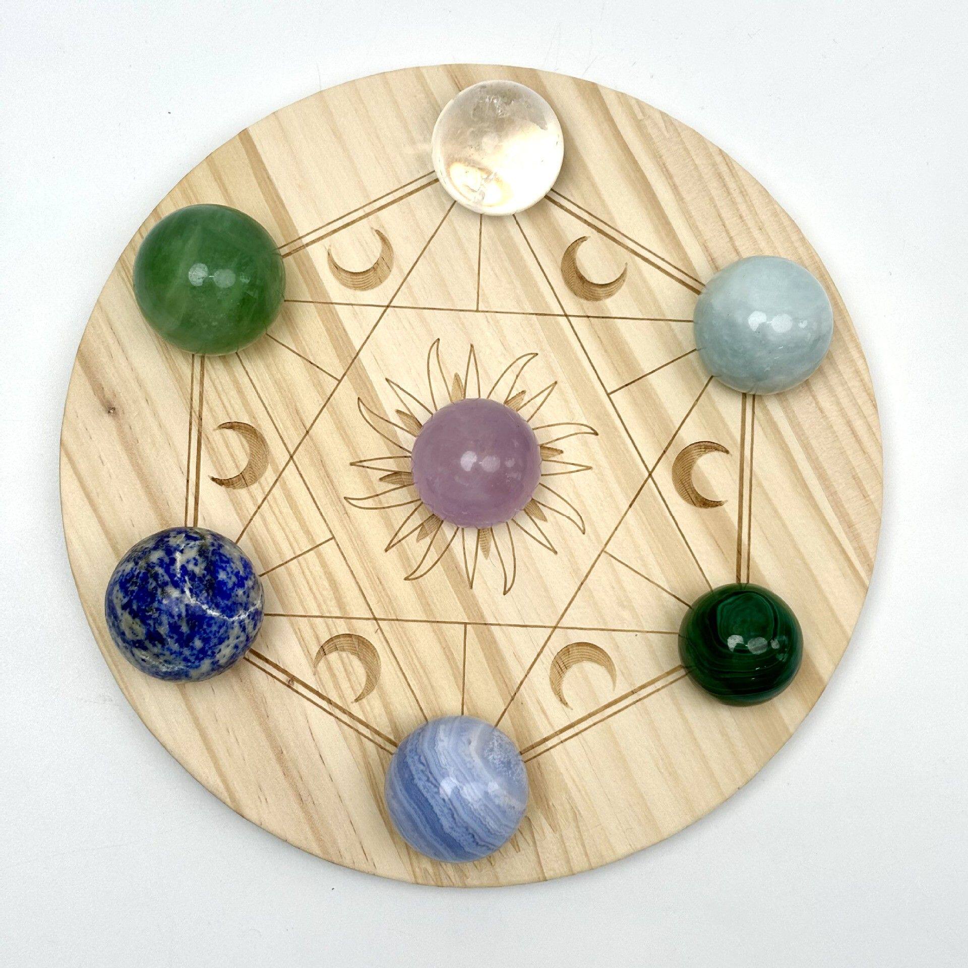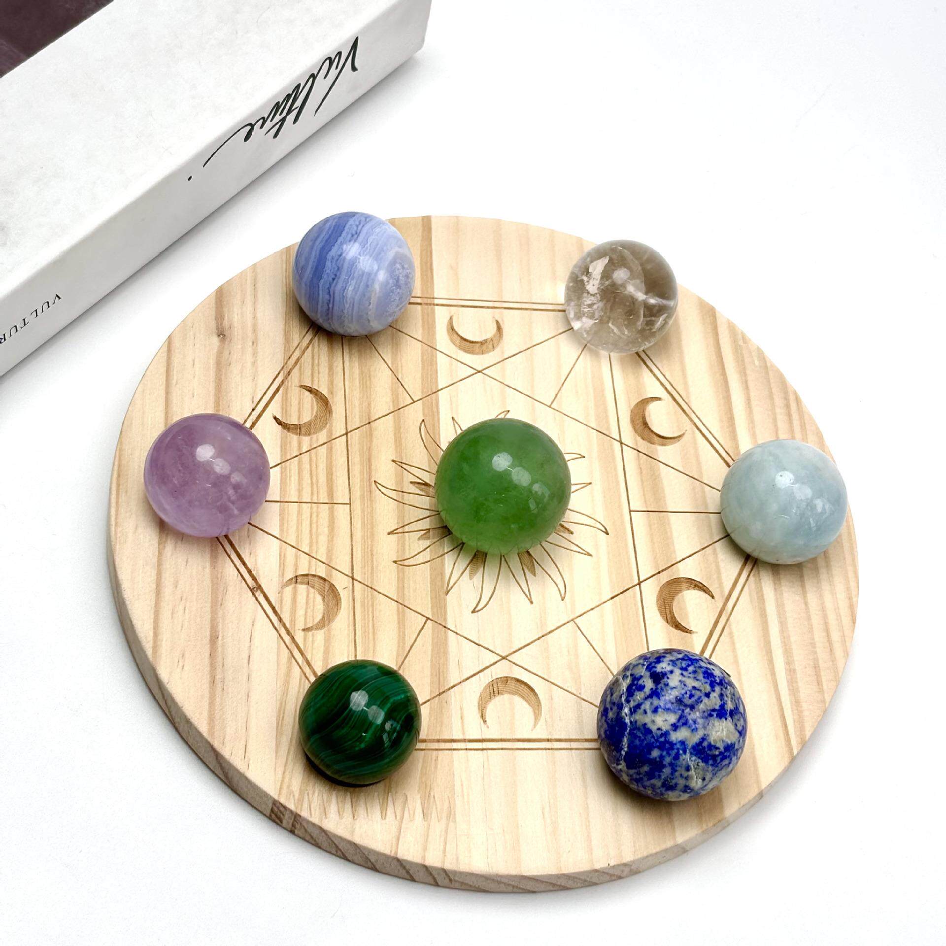 📚 水晶球工艺品底座球托蛋雕托木质多圆查克拉太阳工艺品支架复
