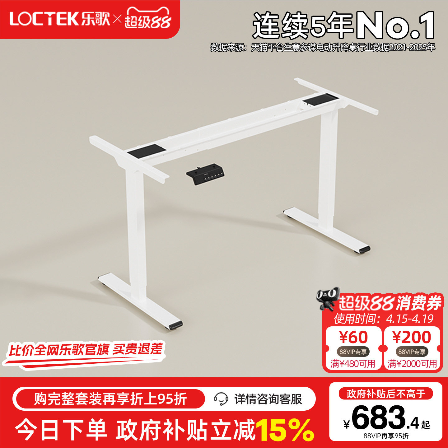 📚 乐歌智能电动升降桌桌腿双电机双横梁办公桌电脑桌学习桌升降桌架