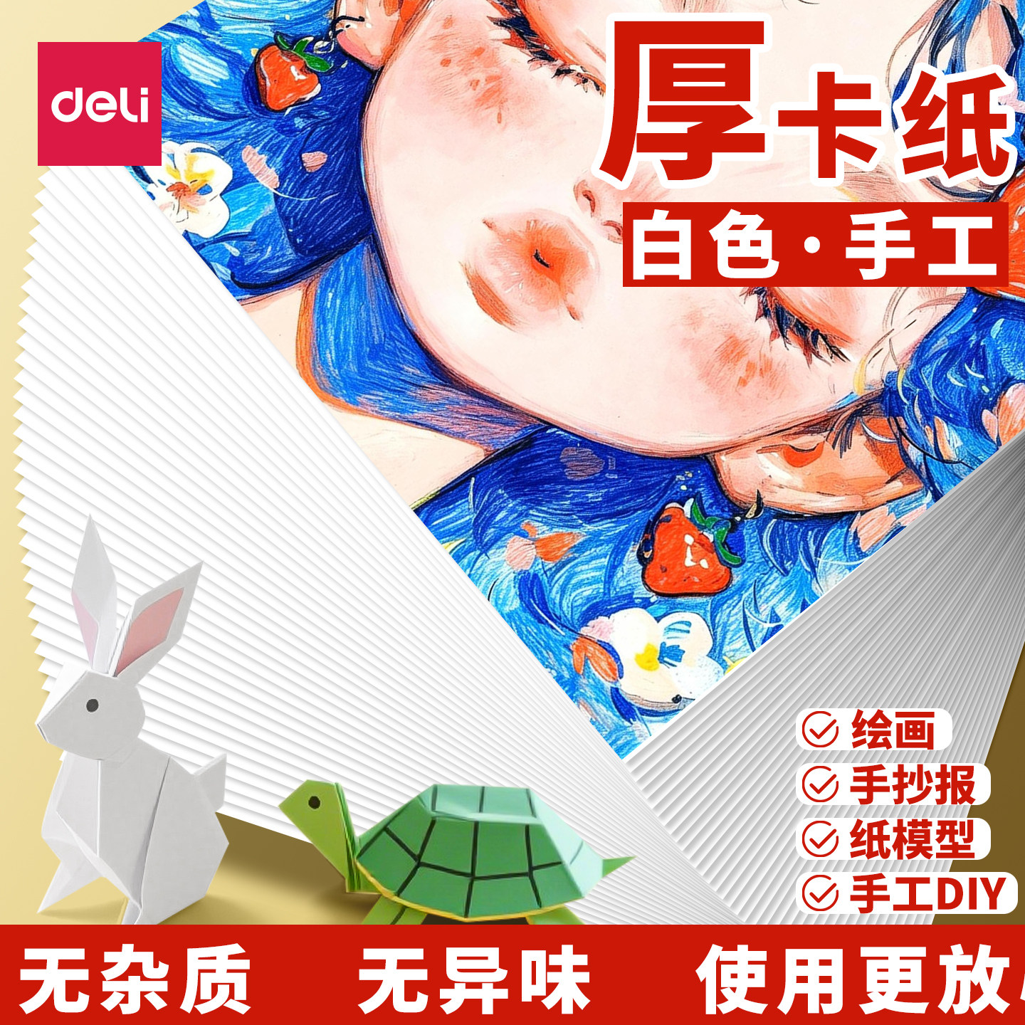 📚 得力白色卡纸手工硬卡纸儿童a4剪纸卡纸加厚8k贺卡幼儿园diy美术绘画专用卡纸套装白4K手绘手抄报230g画报