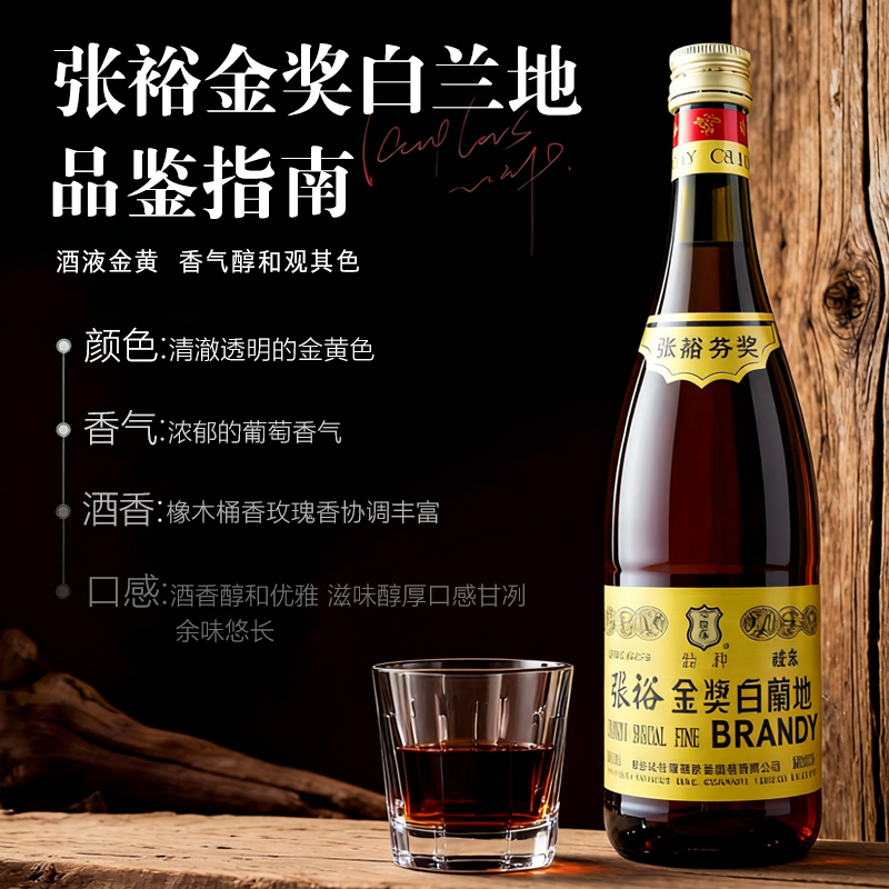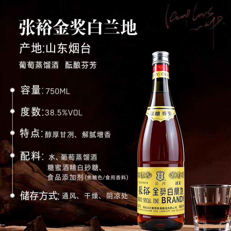 📚 张裕金奖白兰地750ML大瓶38.5度国产洋酒西餐烘焙去味专用葡萄酒