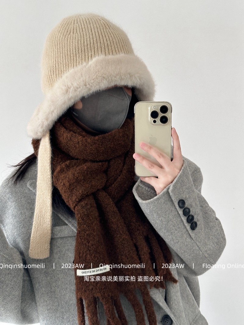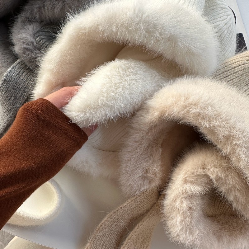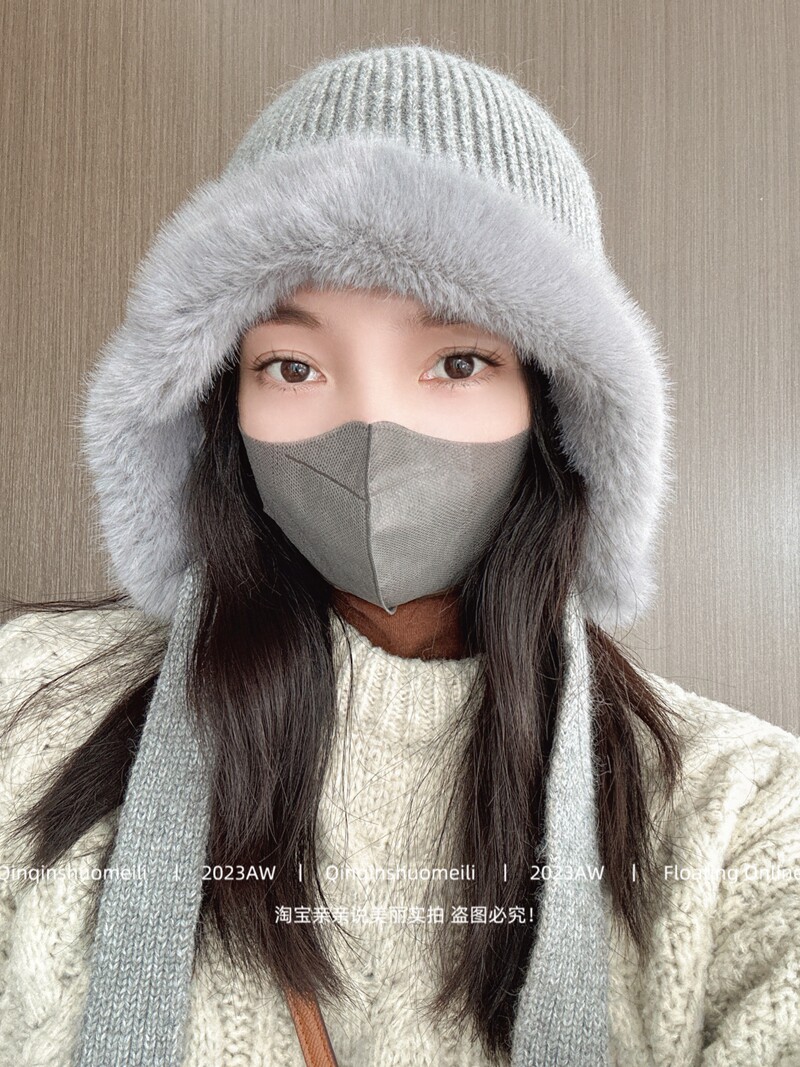 📚 兔毛绒针织护耳帽亲子冬季骑行帽加绒防风抗寒保暖毛线帽冷帽冬季