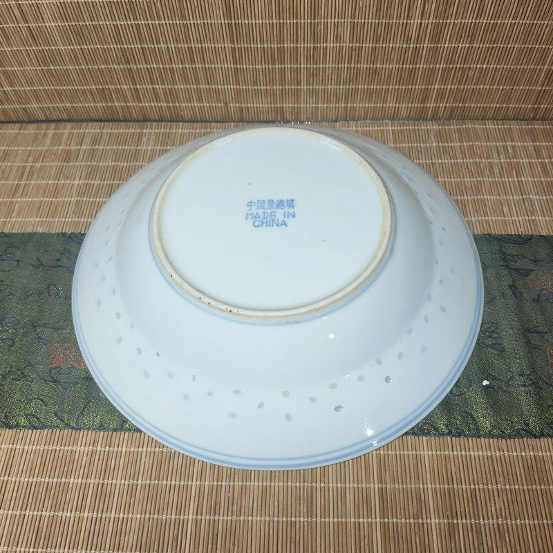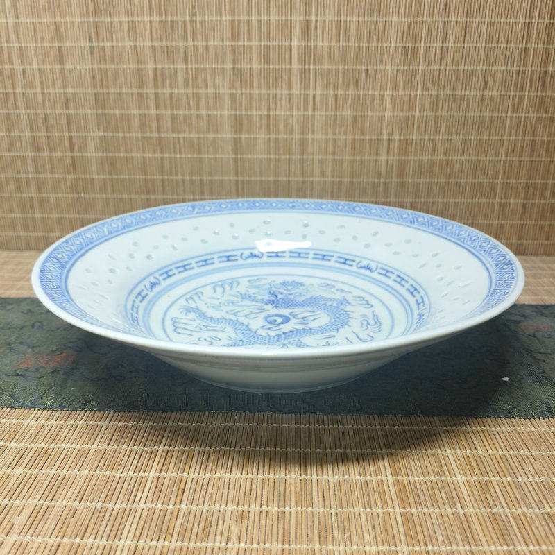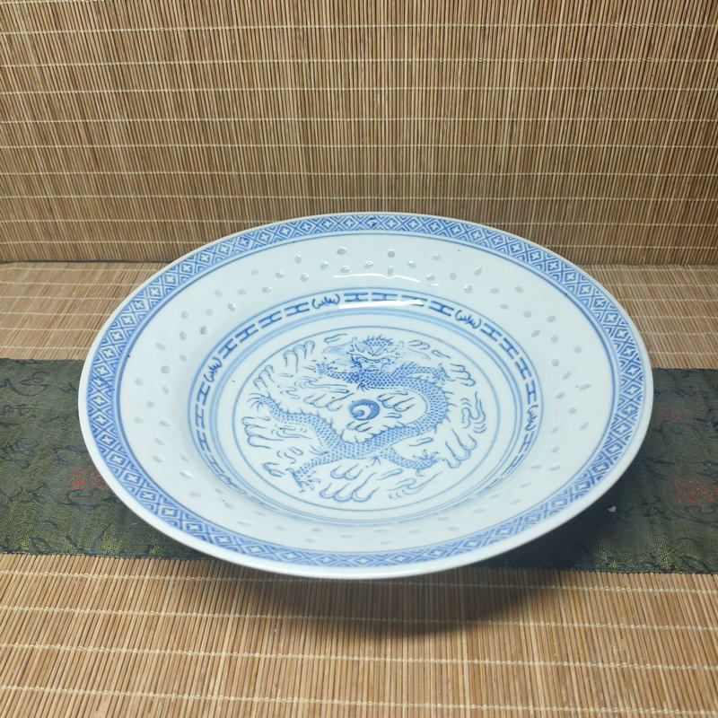 📚 包老/景德镇567老厂瓷/原矿料高温釉下彩青花玲珑龙芯9英寸深菜盘