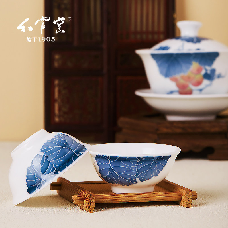 📚 红官窑茶具套装醴陵陶瓷三才盖碗茶杯公道杯釉下彩瓷器大雅品心