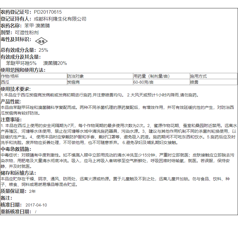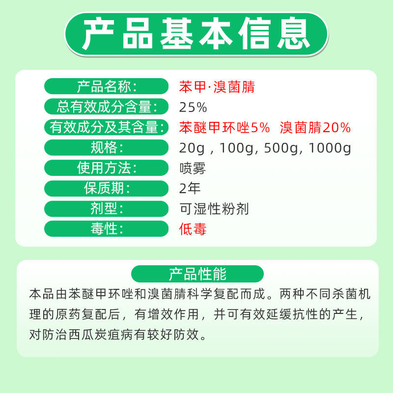 📚 炭洁25%苯醚甲环唑溴菌腈西瓜炭疽病黑斑病白粉病真菌农药杀菌剂