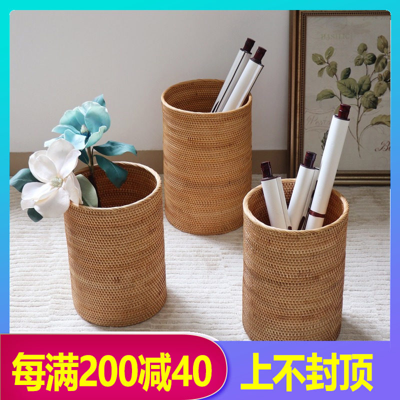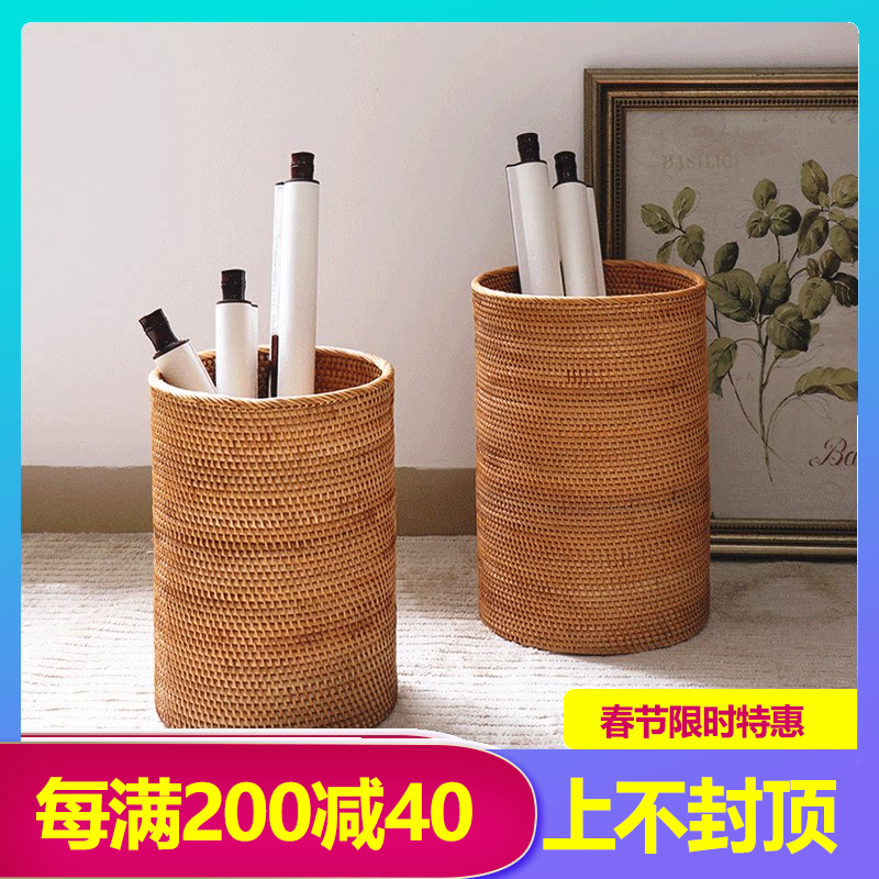 📚 越南藤编手工书画收纳筐字画收纳缸中式书房书法卷轴筒干花桶纸篓