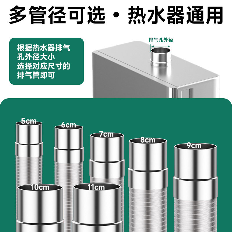 📚 燃气热水器排烟管纯铝伸缩软管强排式不锈钢烟囱排气排风延长配件