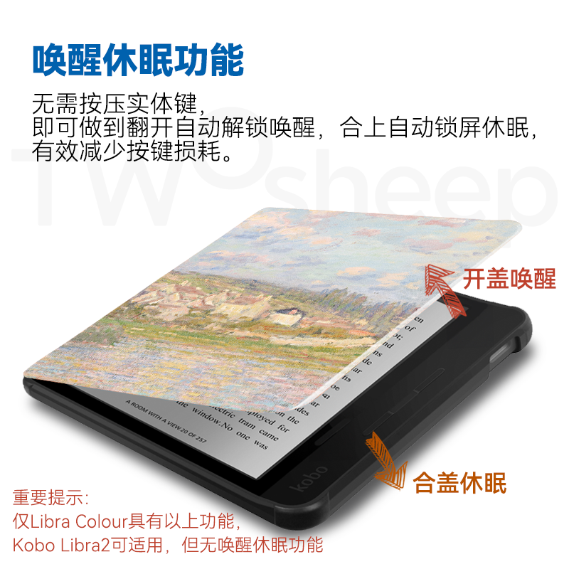 📚 适用Kobo Libra2保护套Kobo Libra Colour保护壳电子书阅读器软壳7英寸休眠唤醒翻盖功能防摔梵高莫奈油画风