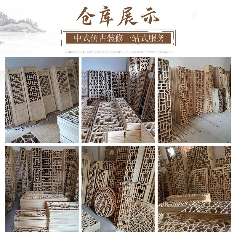 📚 东阳木雕实木花格新中式屏风隔断镂空仿古门窗花玄关背景墙格栅栏