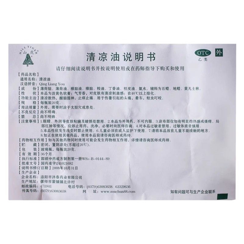 📚 山虎牌清凉油20g防中暑清凉散热止痒止痛提神头痛晕车蚊虫叮咬