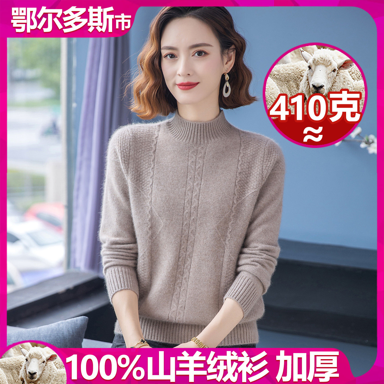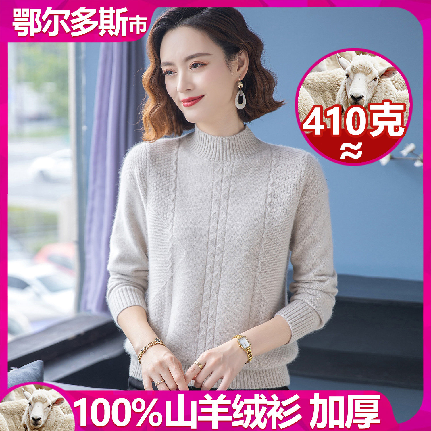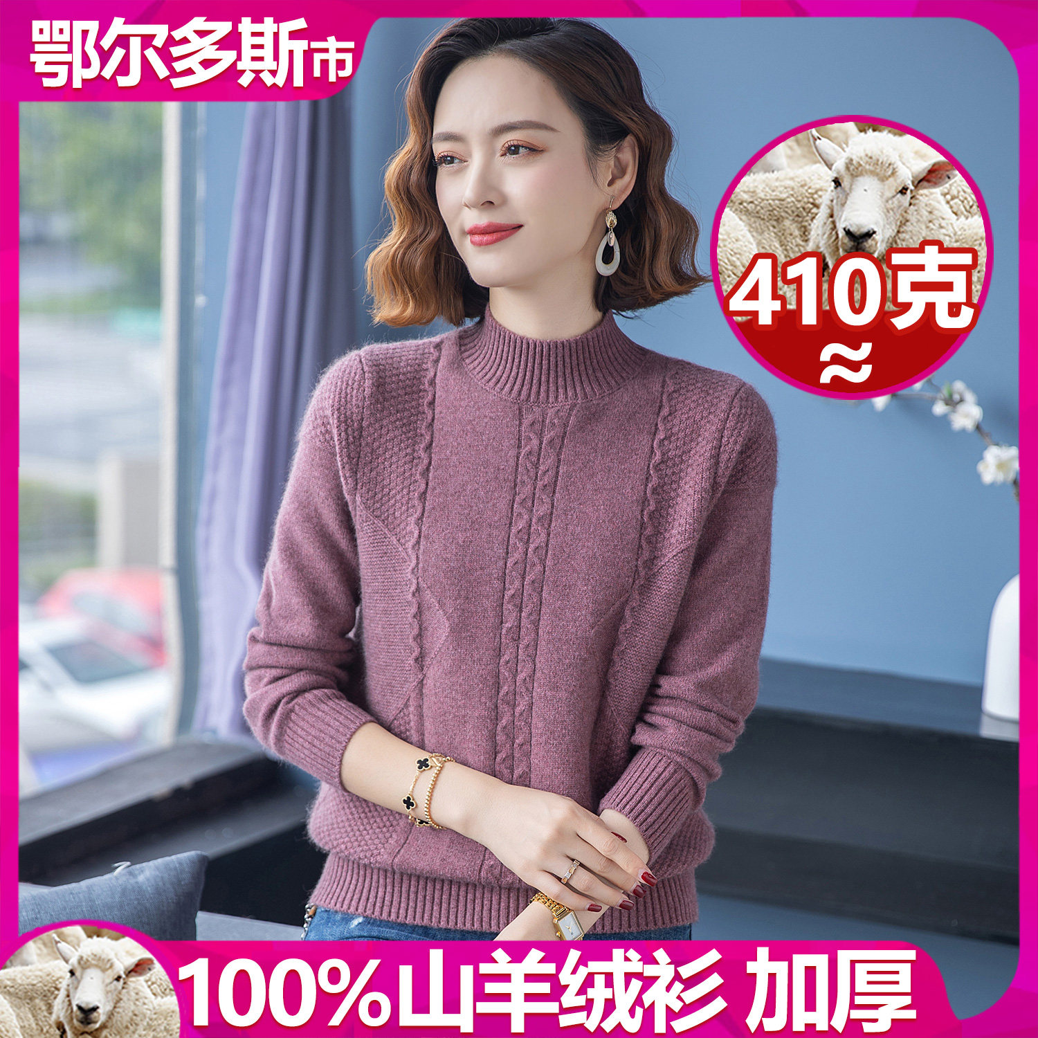 📚 鄂尔多斯市特厚女士羊绒衫中老年大码半高领妈妈100%纯山羊绒毛衣