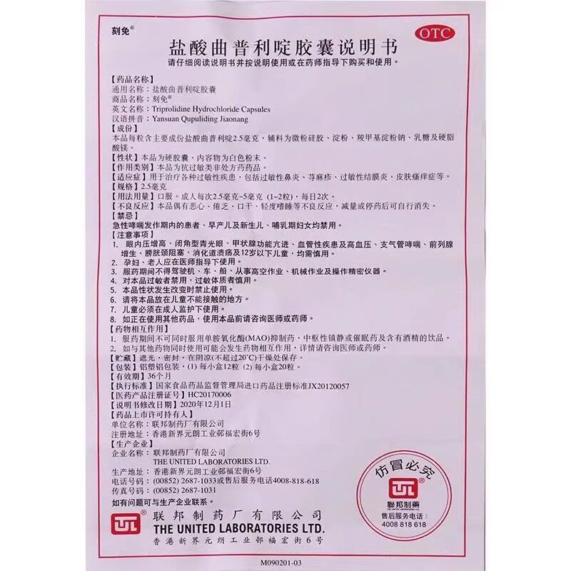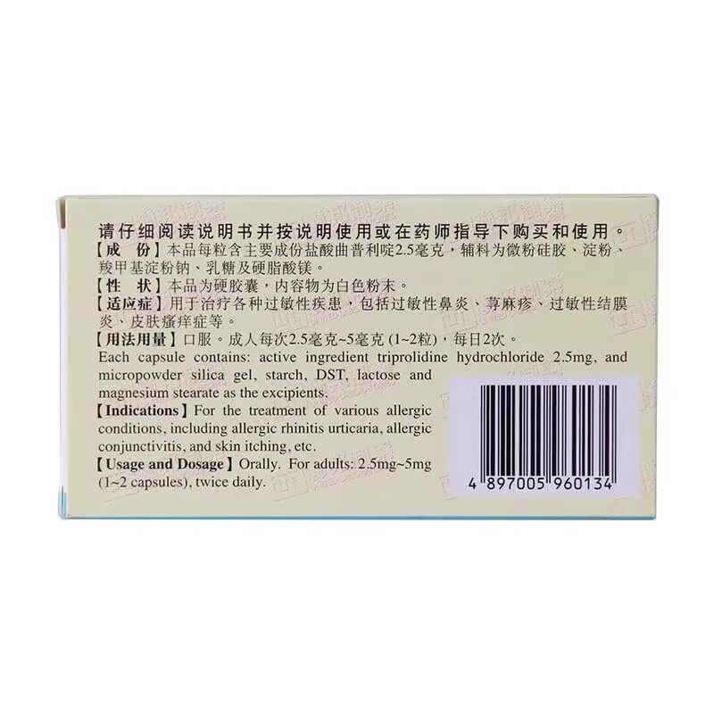 📚 联邦刻免 盐酸曲普利啶胶囊2.5mg*12粒过敏性鼻炎荨麻疹皮肤瘙痒