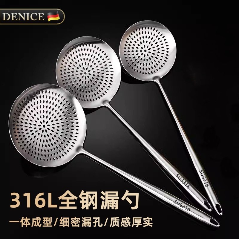 📚 牛肉火锅316L不锈钢漏勺家用厨房一体成型油炸捞面勺饺子过滤网勺