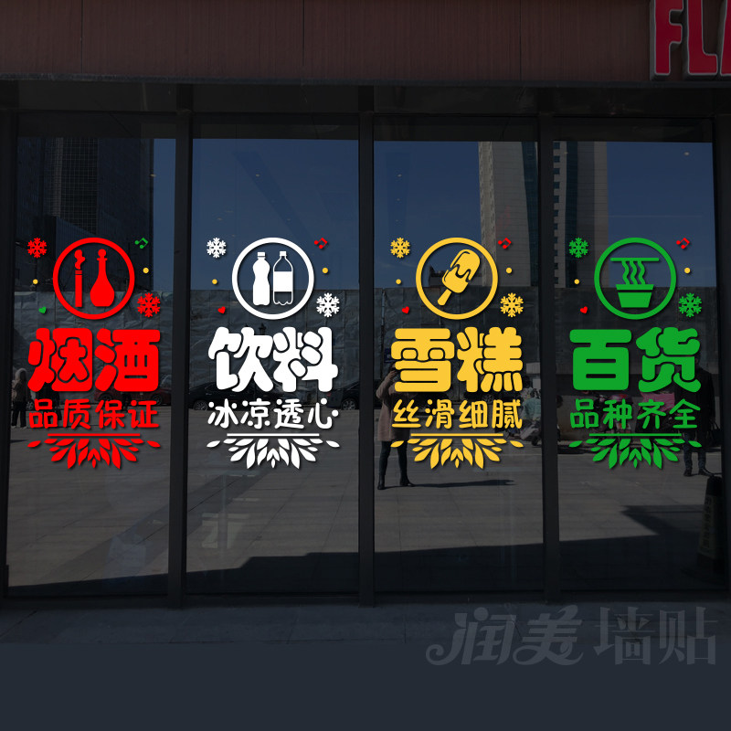 📚 烟酒店饮料冷饮雪糕百货店玻璃门贴纸超市便利店装饰广告海报贴画