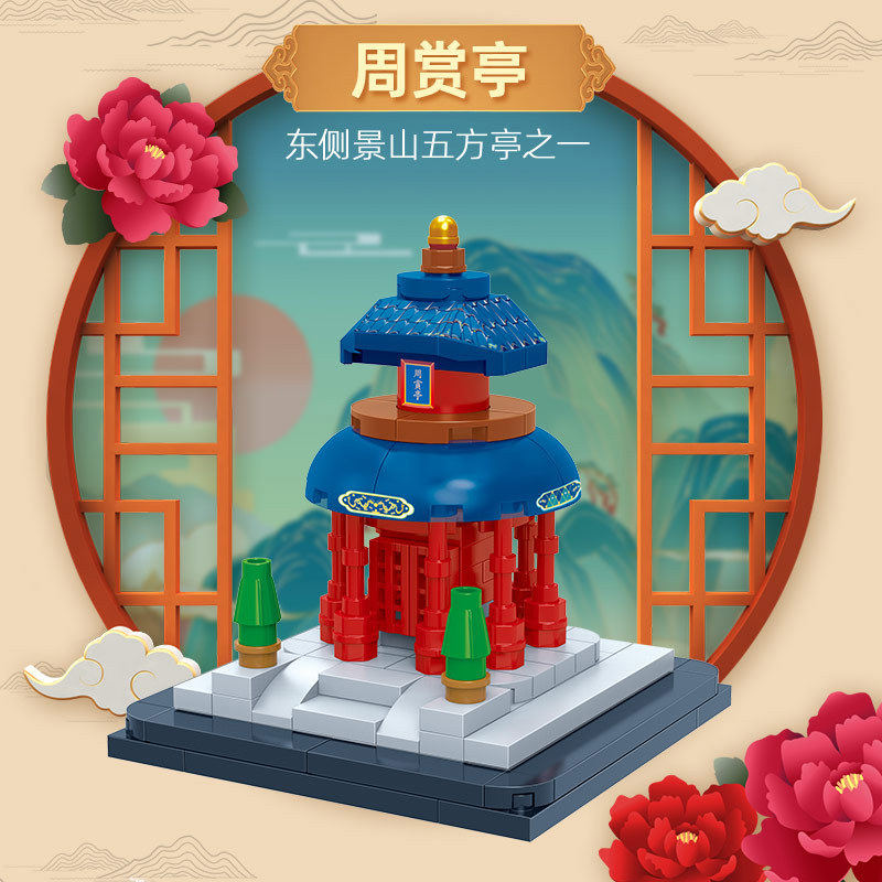 📚 邦宝景山五方亭积木建筑模型儿童节礼物小颗粒拼插积木玩具ET523