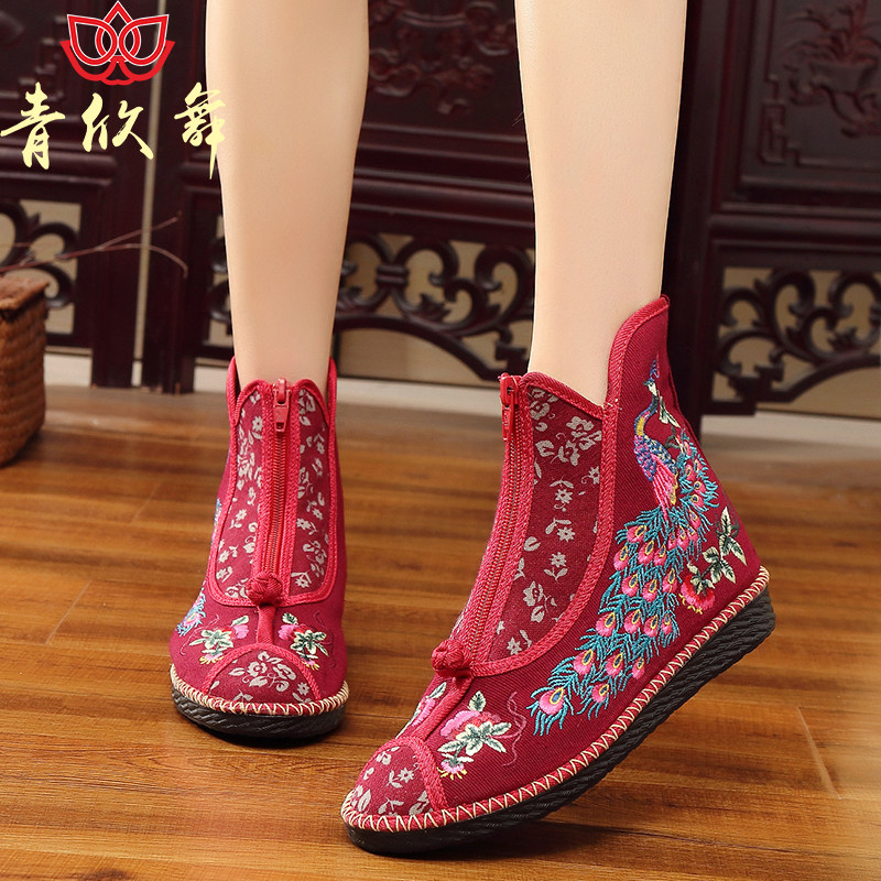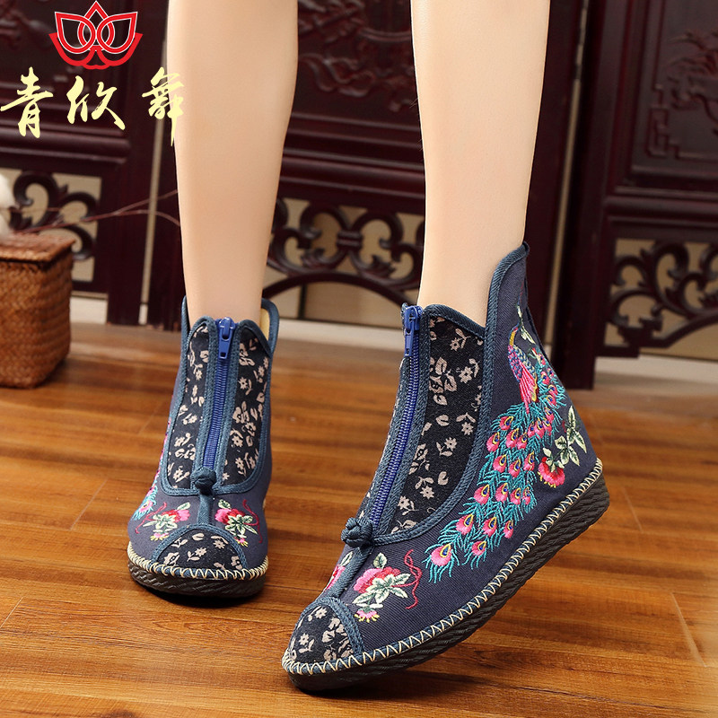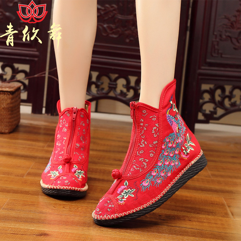 📚 青欣舞秋冬老北京布鞋民族风复古绣花单鞋搭配汉服女单靴加绒棉靴