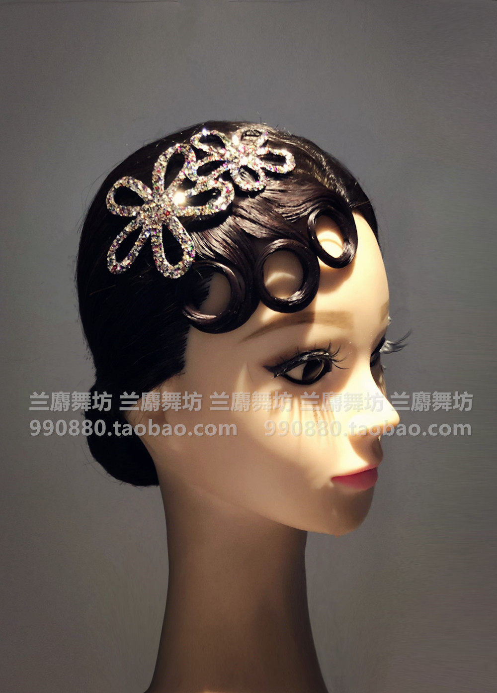 📚 摩登舞拉丁舞成人儿童假刘海卷镶钻假发前额饰品舞蹈头饰发帖