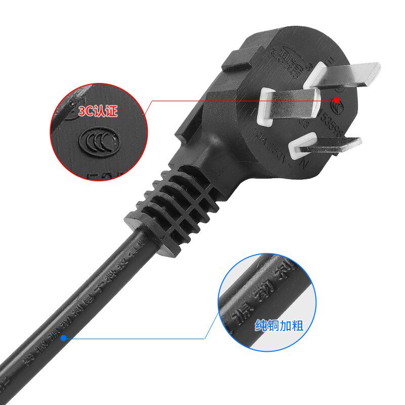 📚 国标三芯电源线3*0.5/0.75/1.5平方连接线三项带插头延长线纯铜