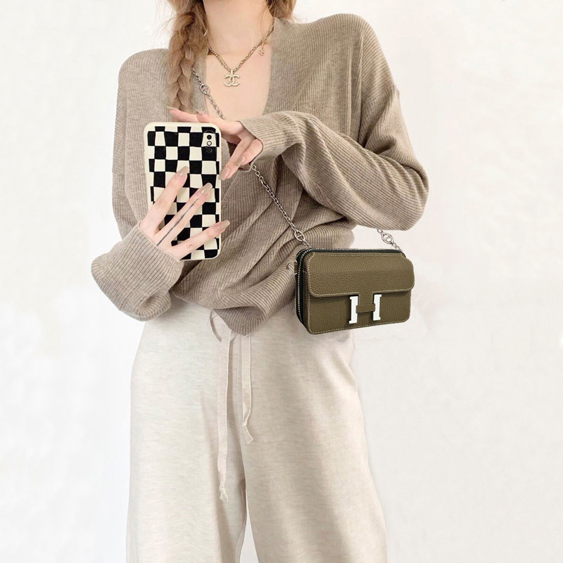 📚 H扣康康包2025新款小方包头层牛皮空姐包真皮豆腐包单肩手机包女
