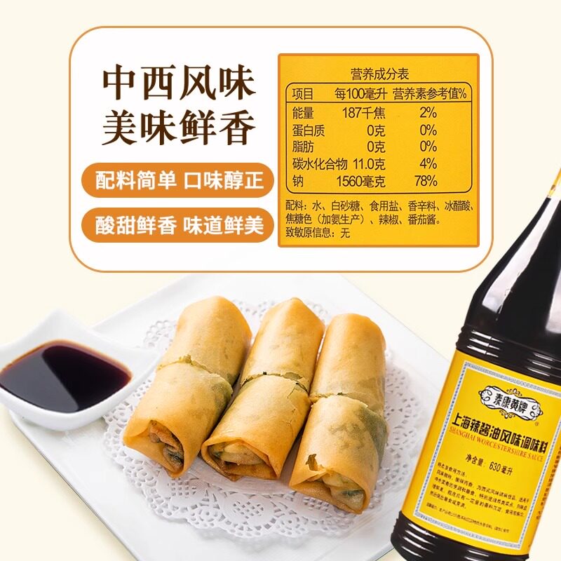 📚 上海特产梅林泰康黄牌辣酱油630ml/200ml炸猪排鸡排春卷蘸料尝鲜