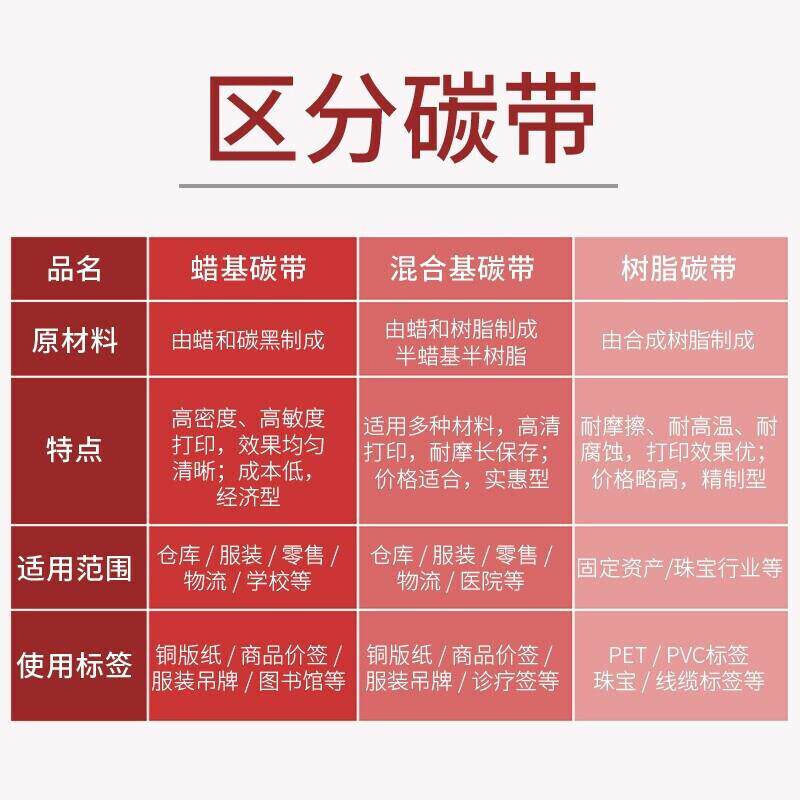 📚 得印(befon)110mm*70m双轴碳带增强树脂条码色带打印机碳带六支装