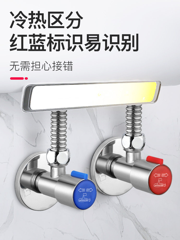 📚 潜水艇角阀304不锈钢加厚三角阀冷热水器通用4分角阀开关止水阀门
