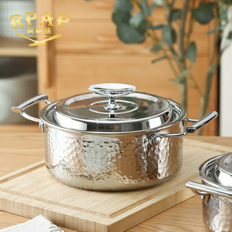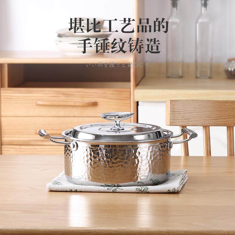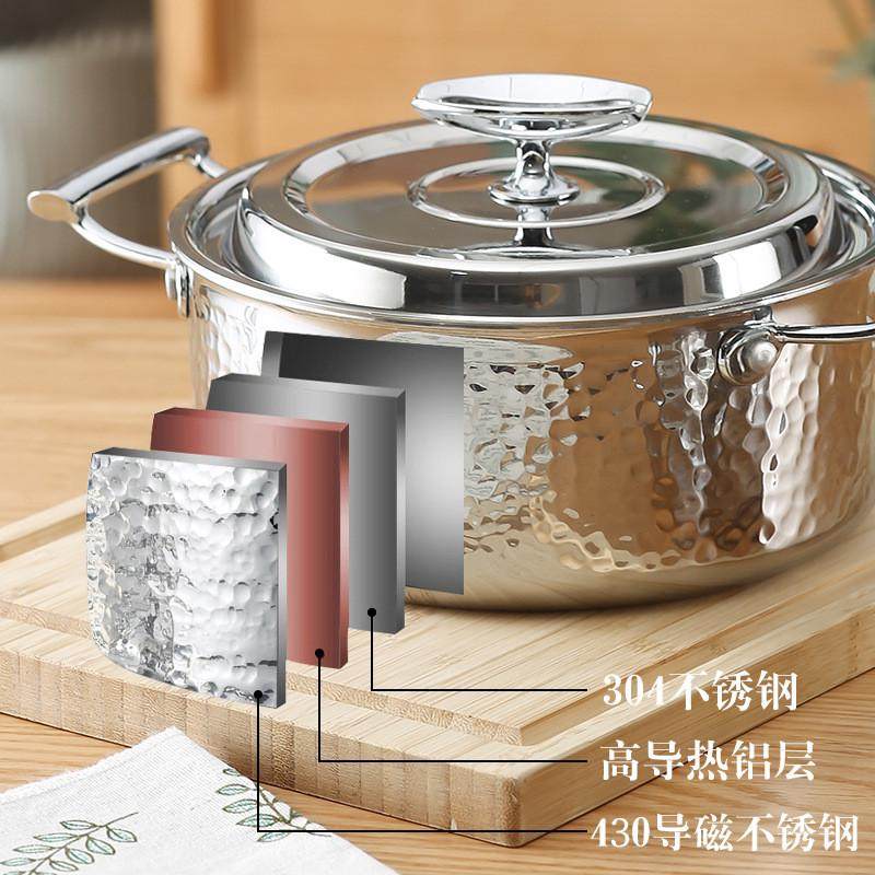 📚 加厚logo双耳锤三层大容量银可味清不锈钢汤锅加印纹304火锅钢单