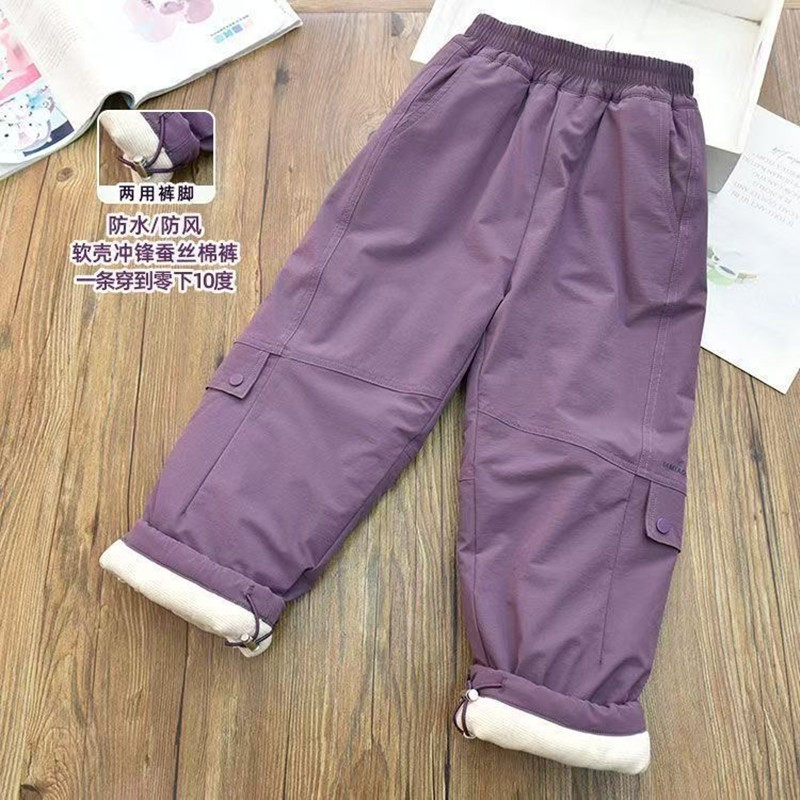 📚 中大童软壳冲锋裤滑雪裤冬季夹棉加厚棉裤防风防水保暖外穿