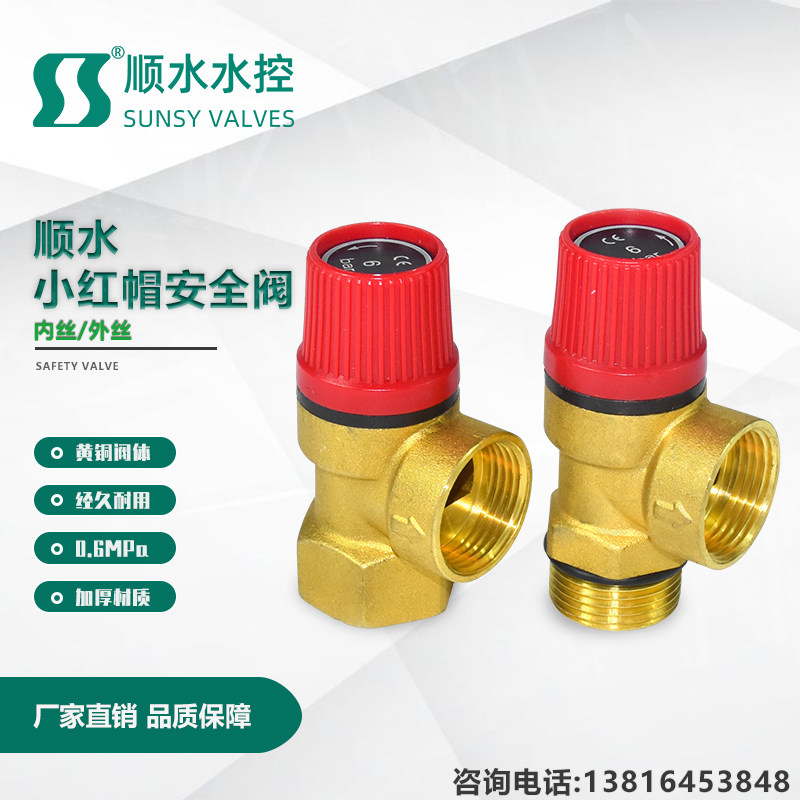📚 顺水安全阀内外丝4分6分水箱自动泄压黄铜螺纹直角小红帽1-9bar
