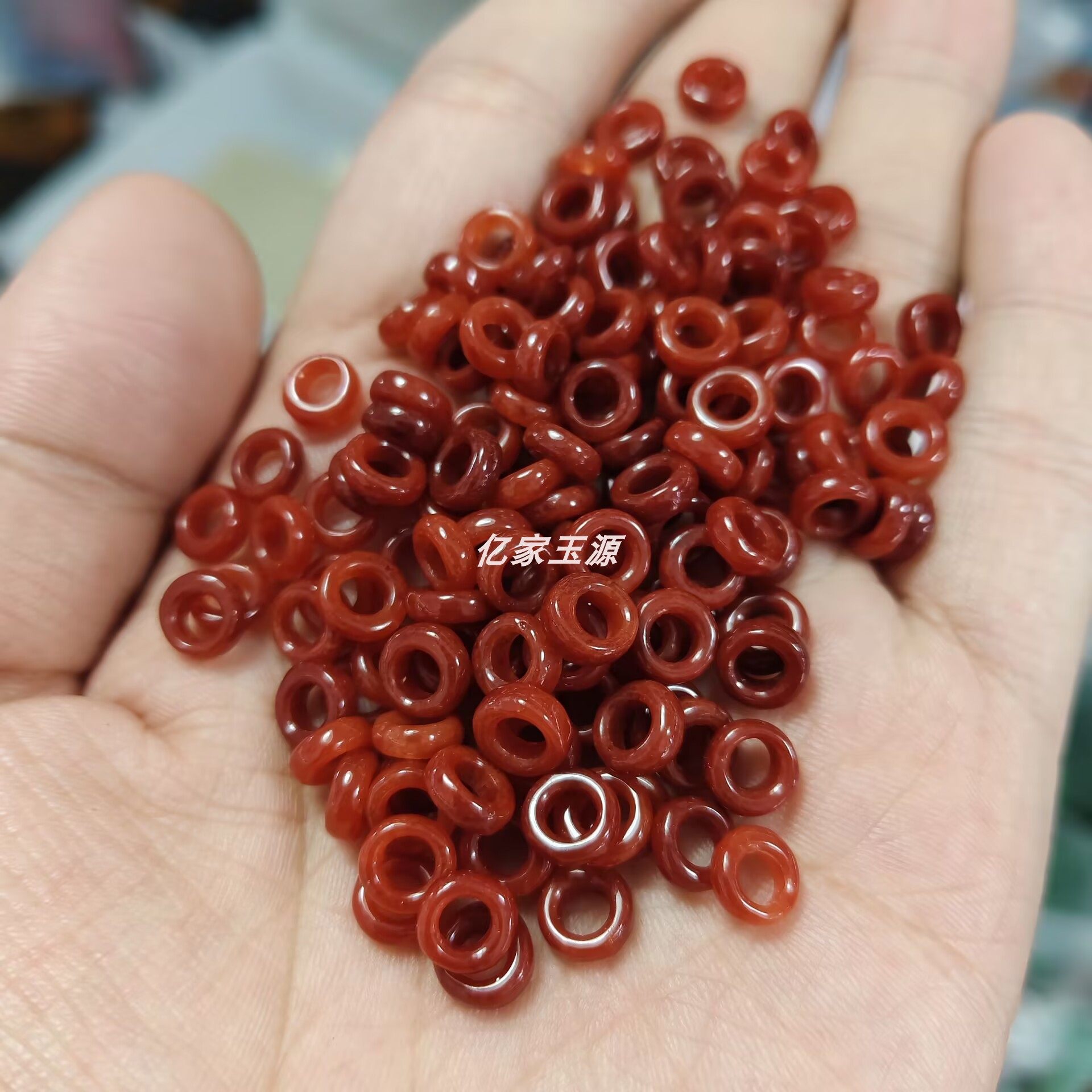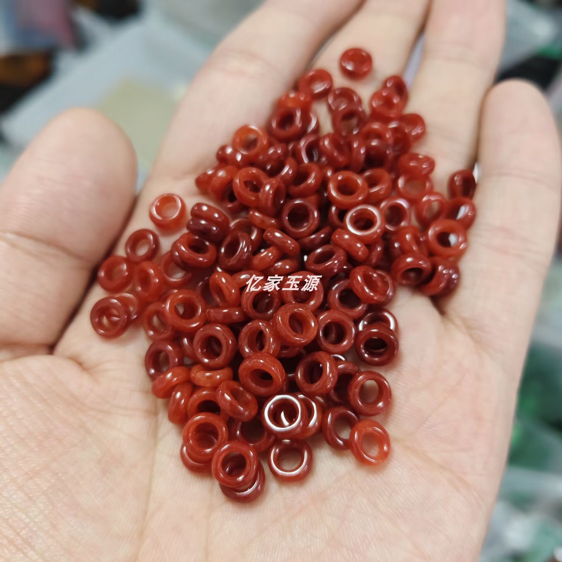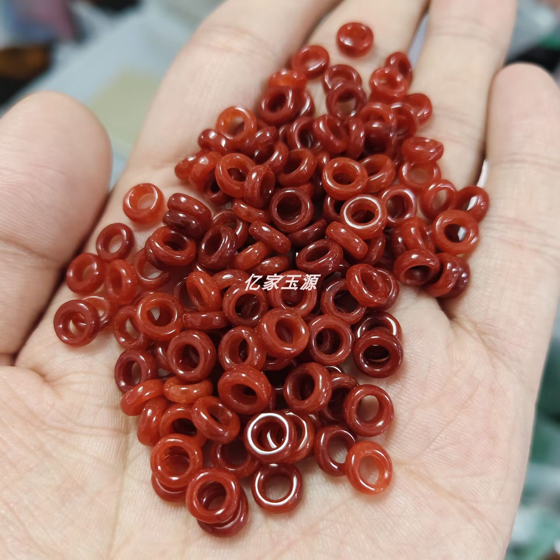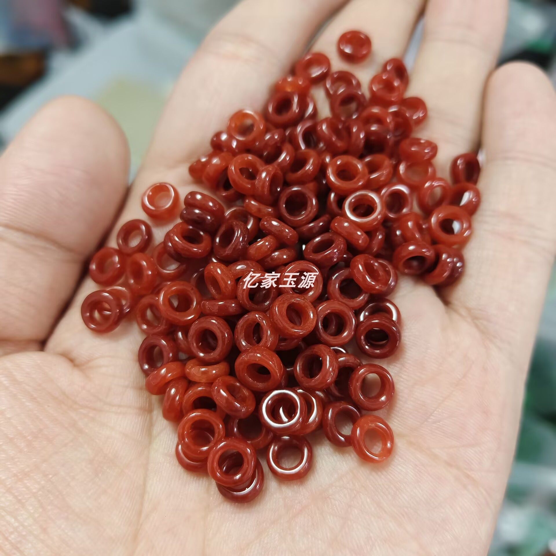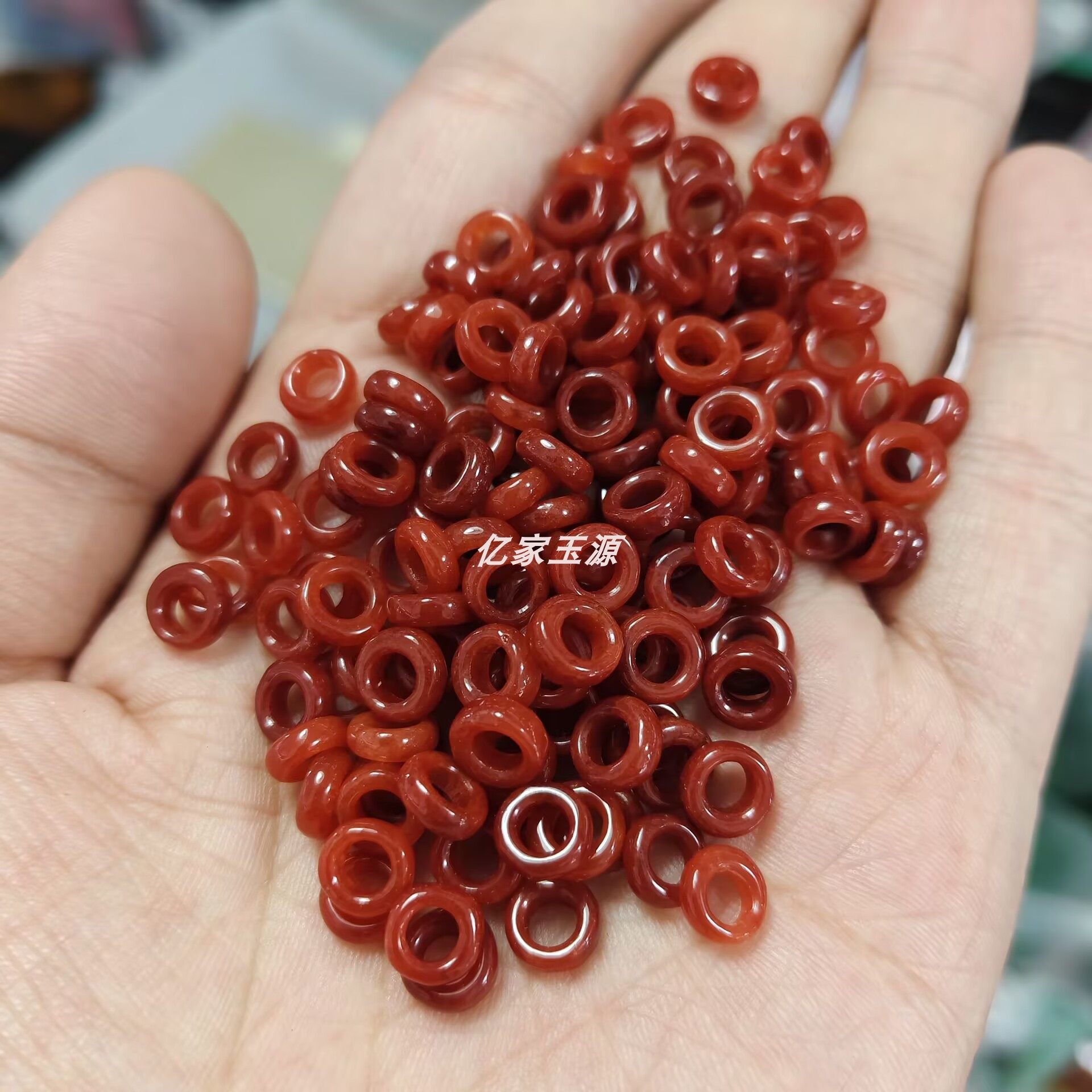 📚 翡翠红翡玉环大孔玉石散珠红干青吊环跑环甜甜圈DIY饰品配件直销