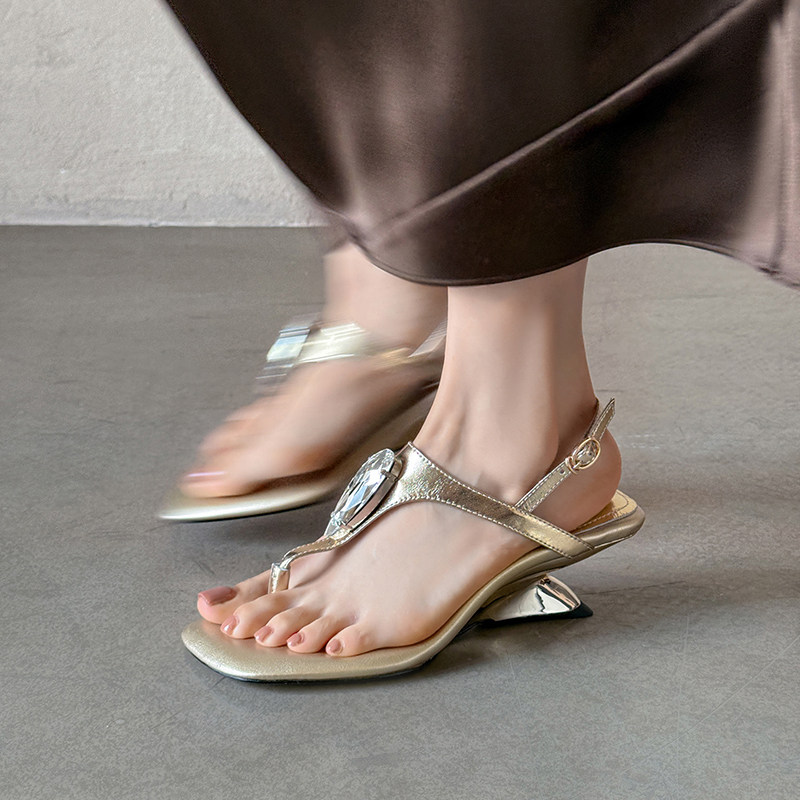 📚 「牧野」坡跟水钻夹趾凉鞋女夏季外穿小个子中跟沙滩厚底人字拖鞋