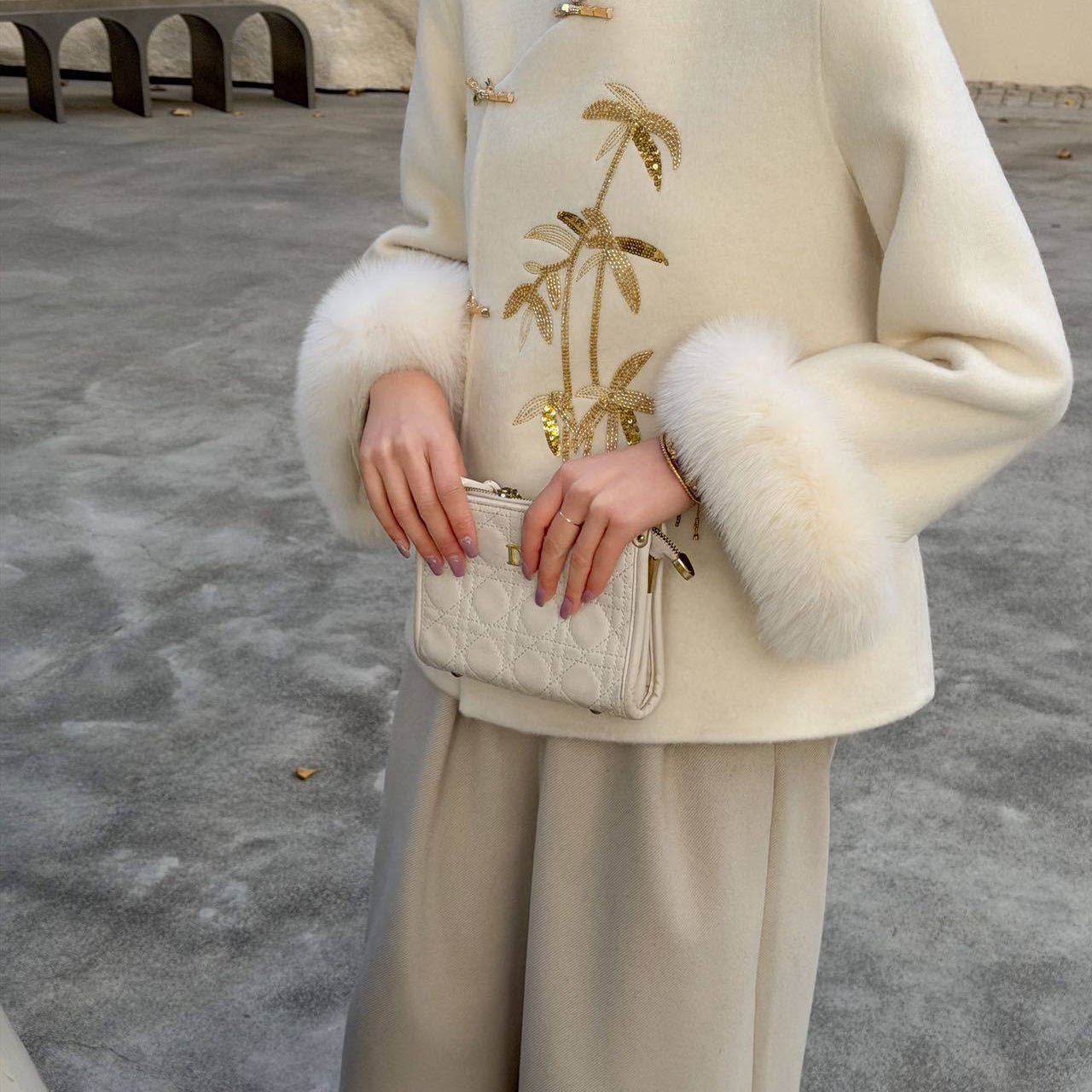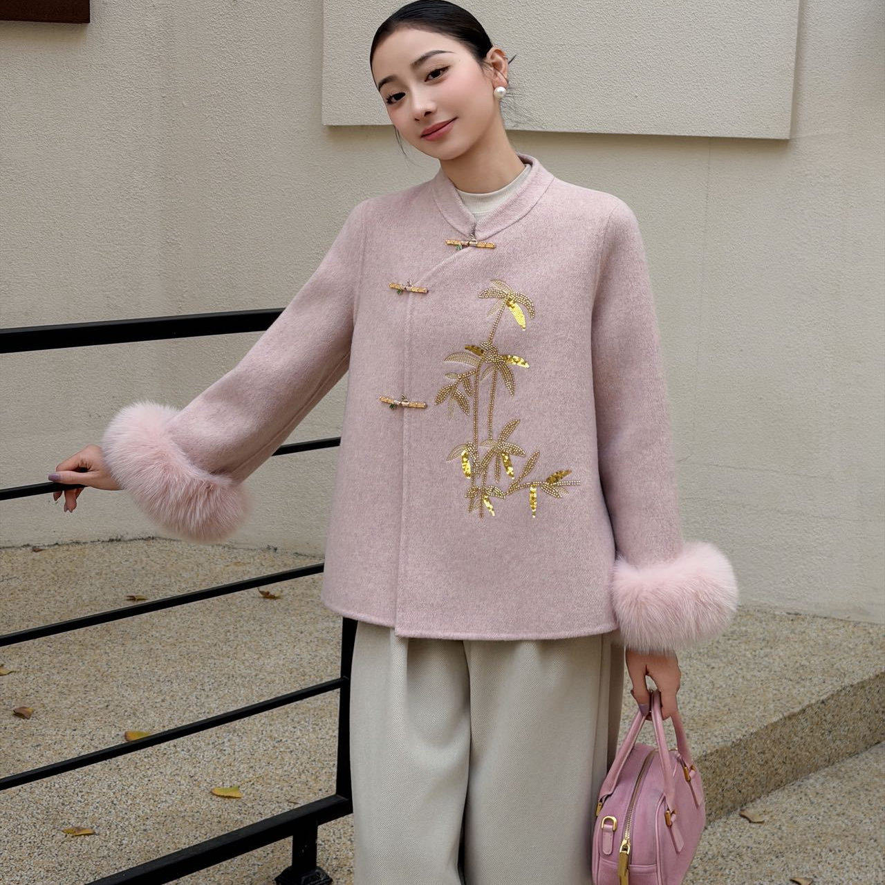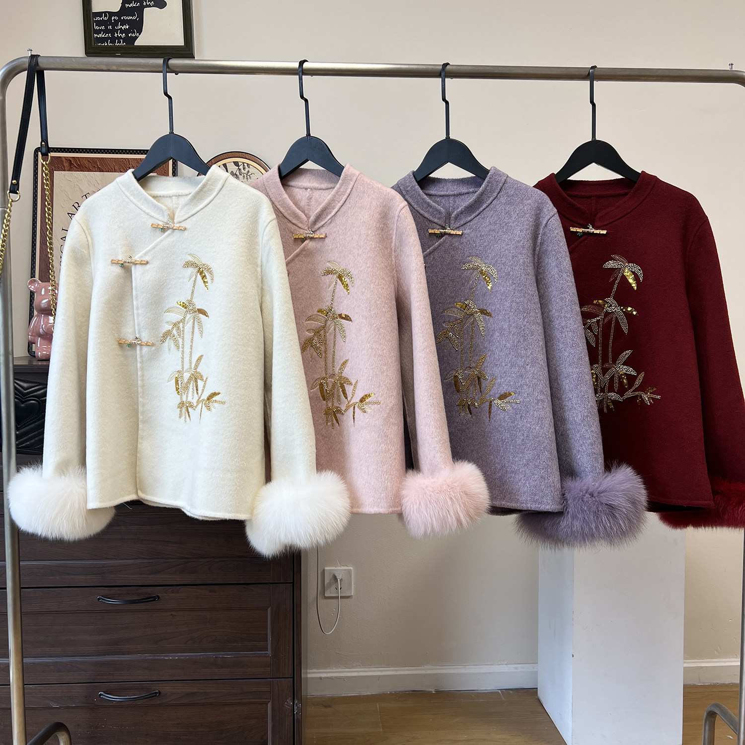 📚 2025冬季中式国风贴钻红色羊毛羊绒大衣女短款小个子保暖毛呢外套