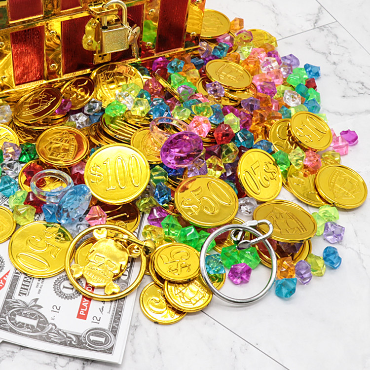 📚 儿童藏宝箱水晶宝石玩具海盗宝箱盒宝藏寻宝游戏金币道具百宝箱