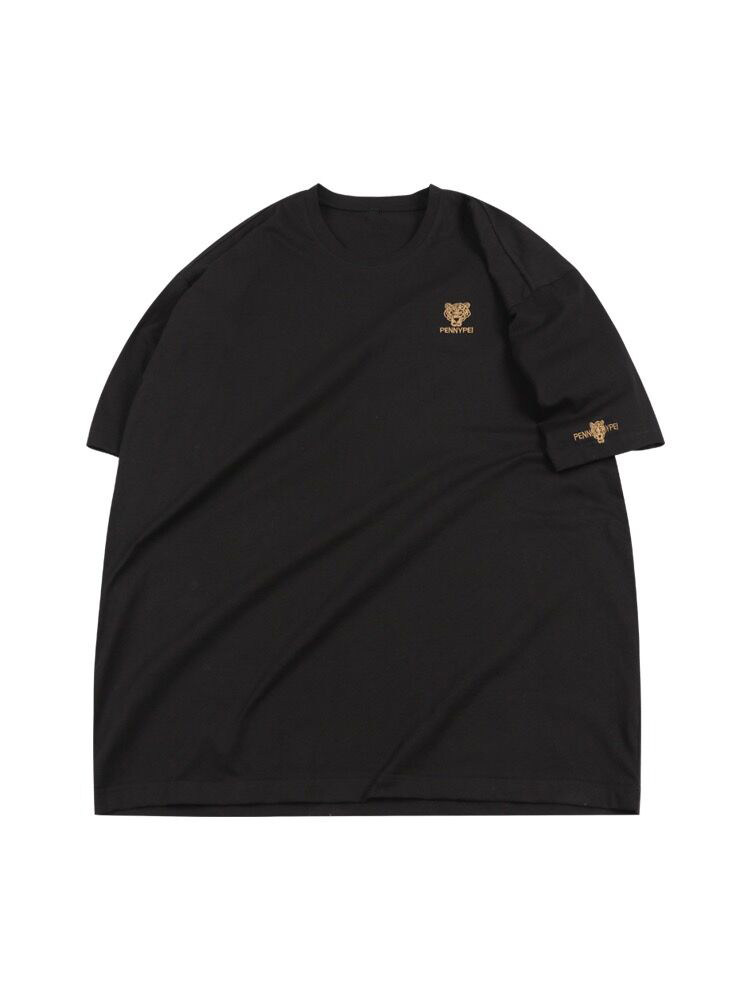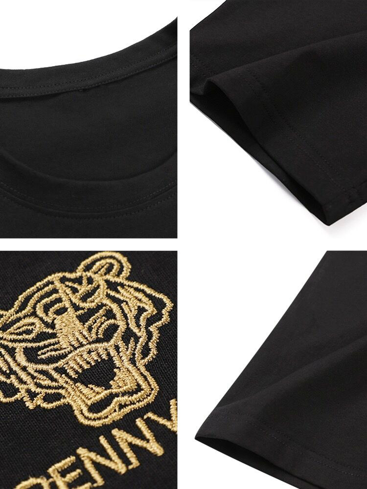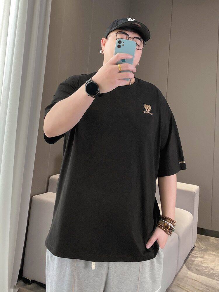 📚 夏季潮牌大码纯棉圆领短袖T恤男士胖子加肥加大老虎头刺绣体恤衫
