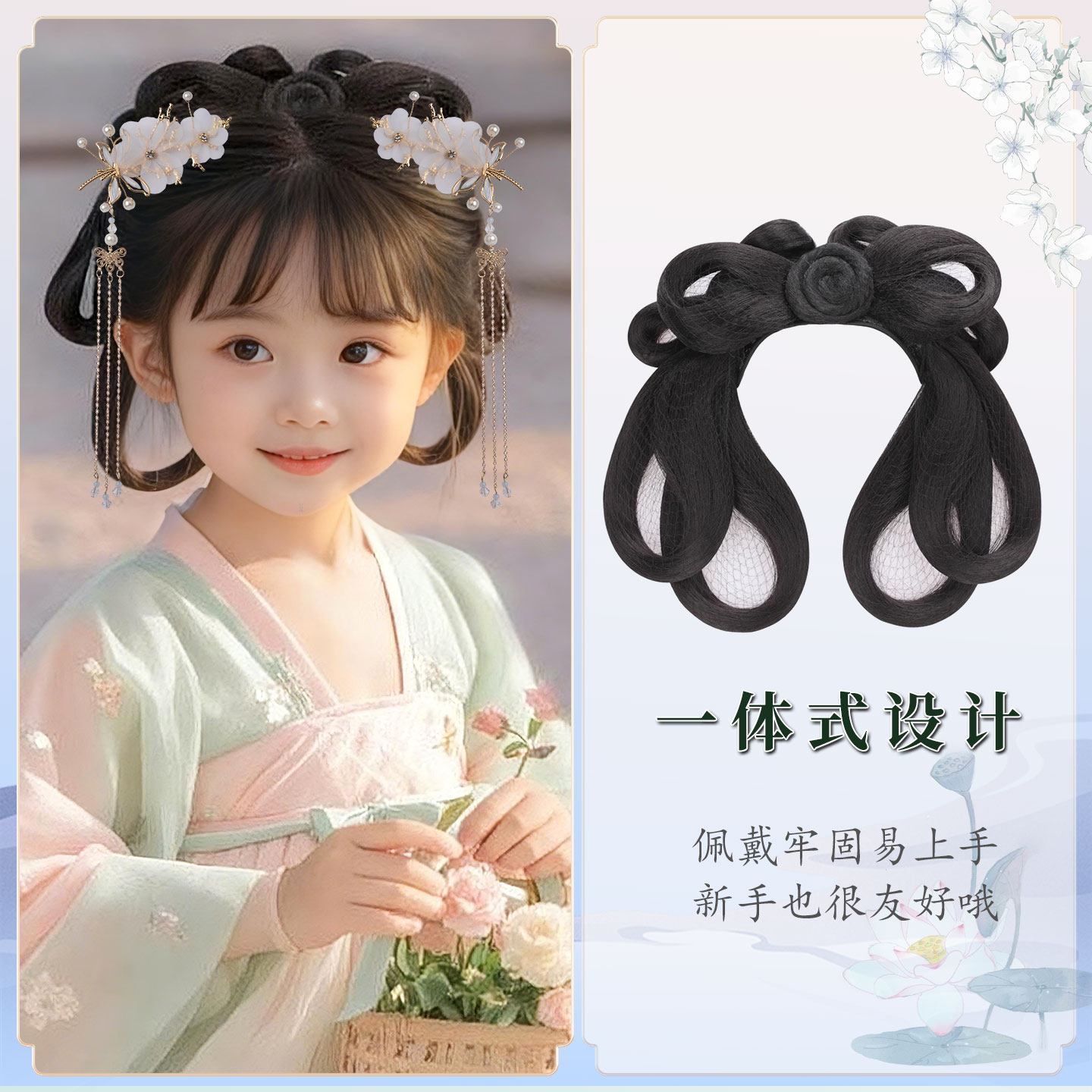 💥惊艳!古风汉服假发儿童发包一体式懒人发髻,券后价5.8就入手!💖