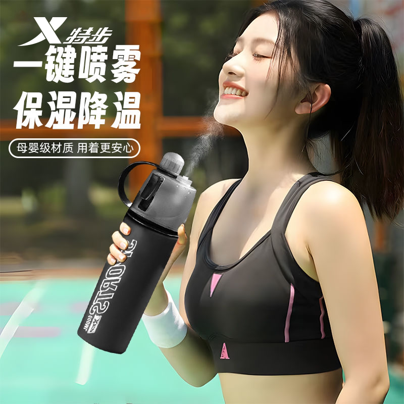 📚 特步喷雾水杯子运动夏季可喷水壶瓶男款学生上学专用儿童骑行初中