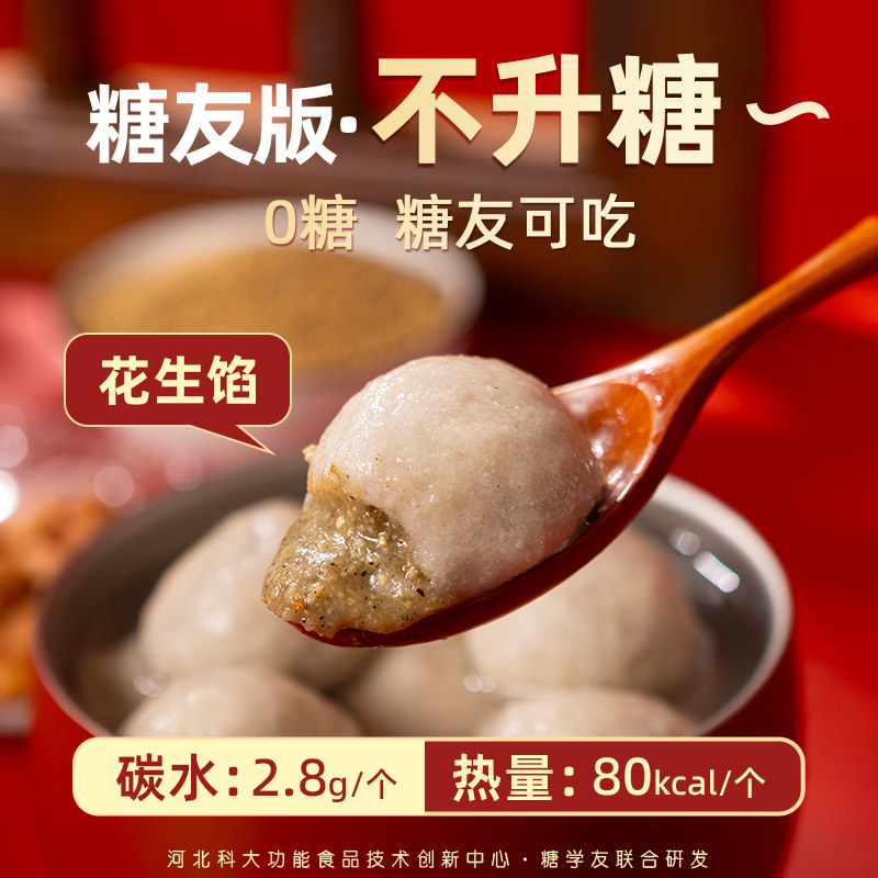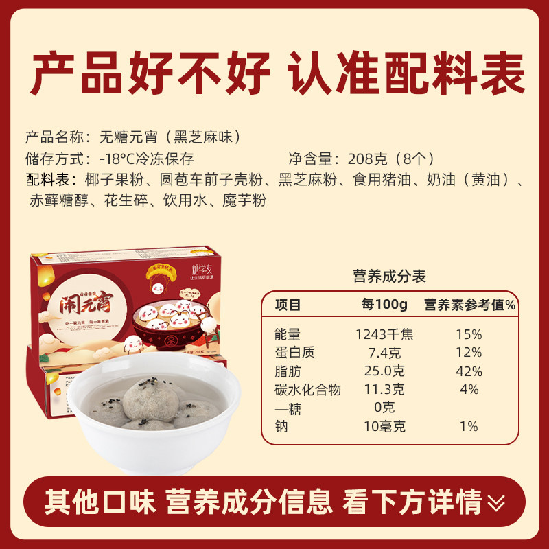 📚 糖学友生酮食品无麸质控糖汤水圆黑芝麻元宵无糖精花生馅糖友食品