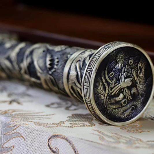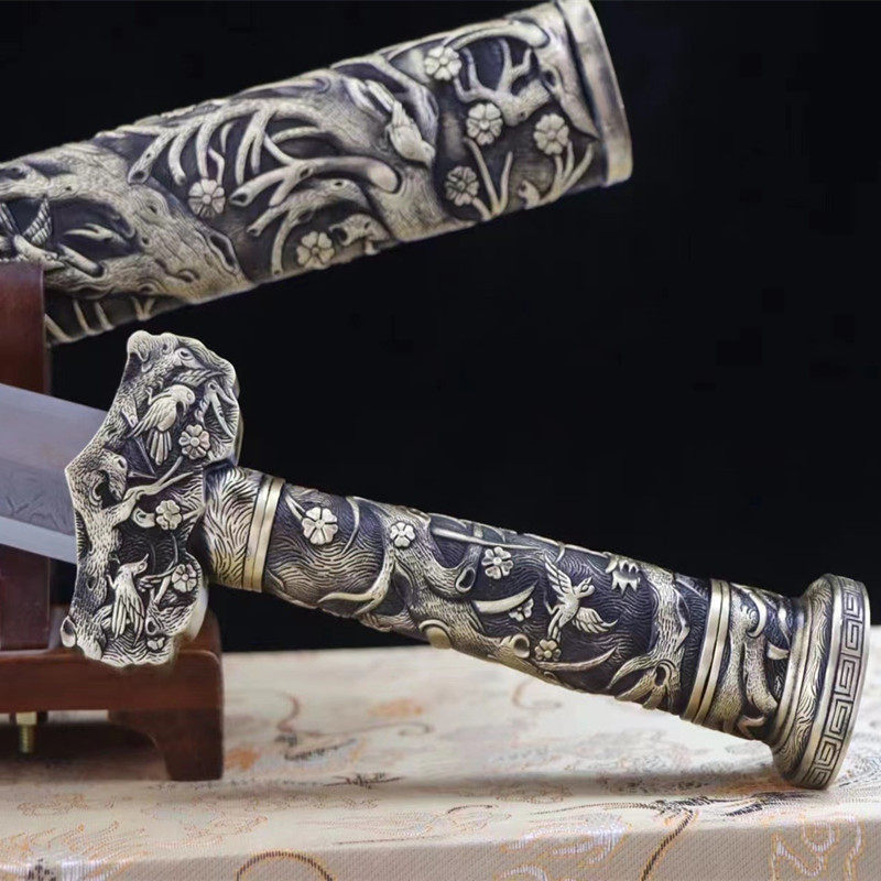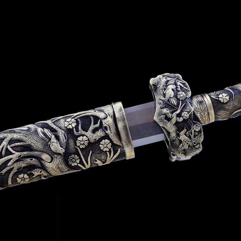 📚 正品龙泉李记刀剑喜上眉梢高端精品唐剑全铜雕刻大马士革未开刃