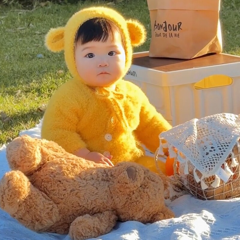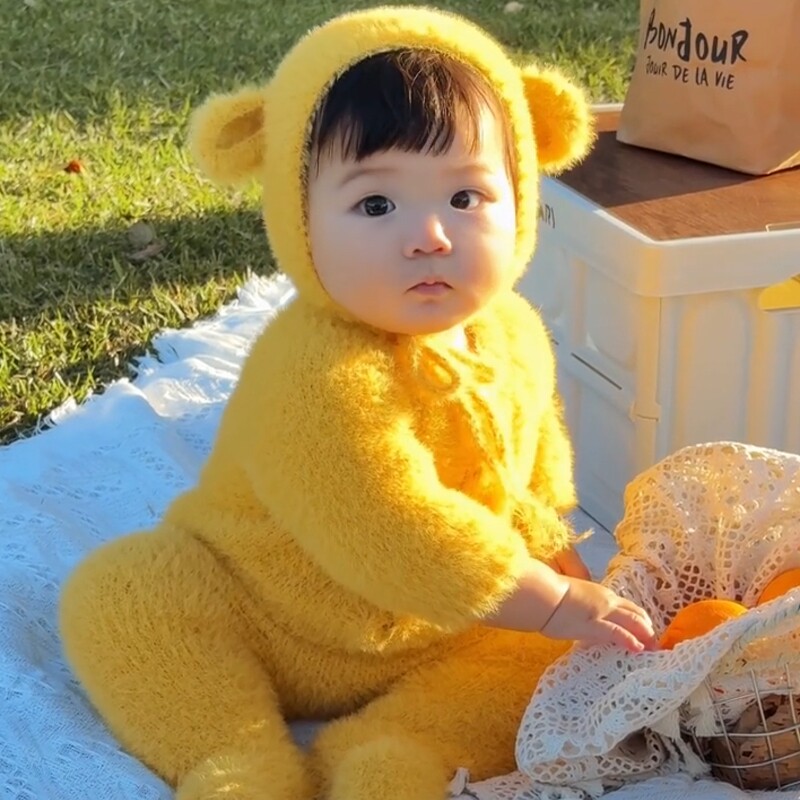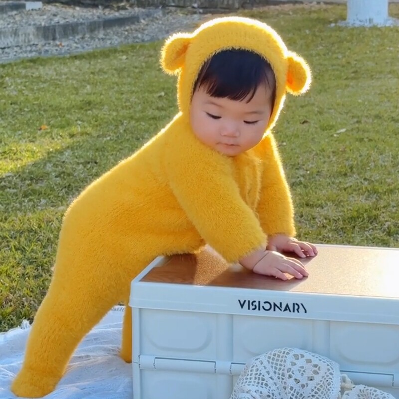 📚 宝宝毛茸茸连体睡衣儿童秋装毛绒小熊衣服超萌婴儿搞笑家居服春秋