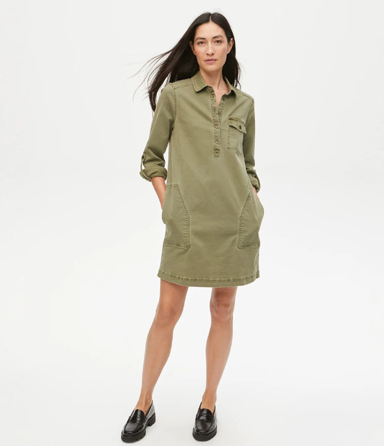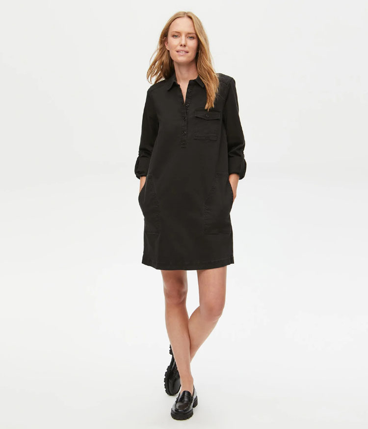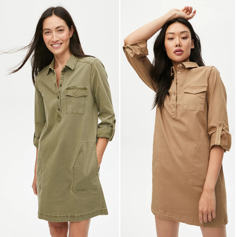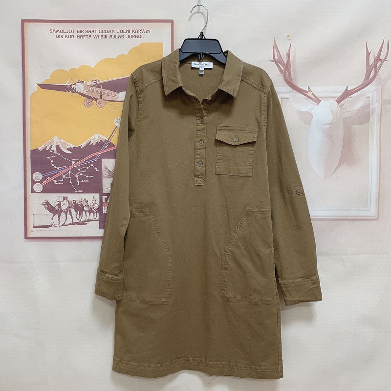 📚 欧美水洗98%棉纯色休闲套头口袋弹力棉衬衫连衣裙外贸原单女春夏