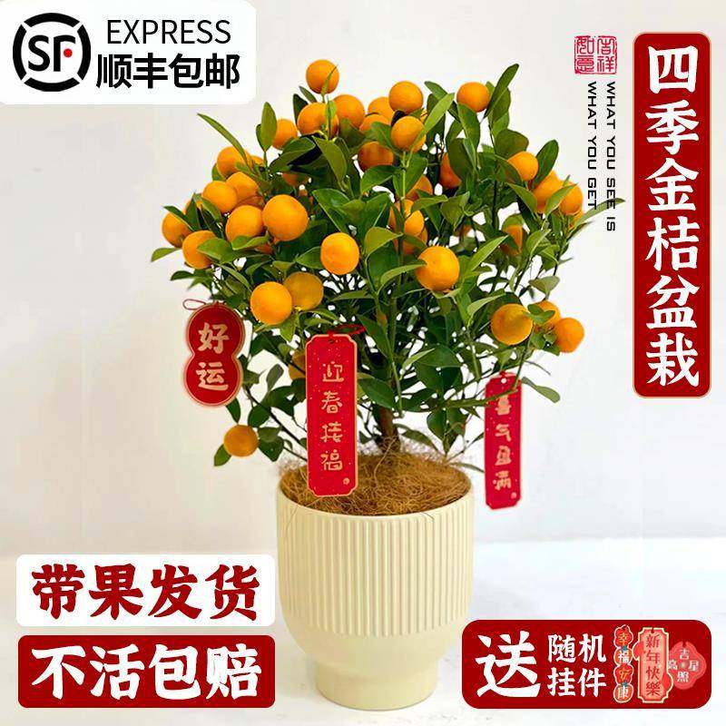 📚 四季金桔绿植盆栽带果可食用室内外桌面金橘果树植物年宵花卉盆景