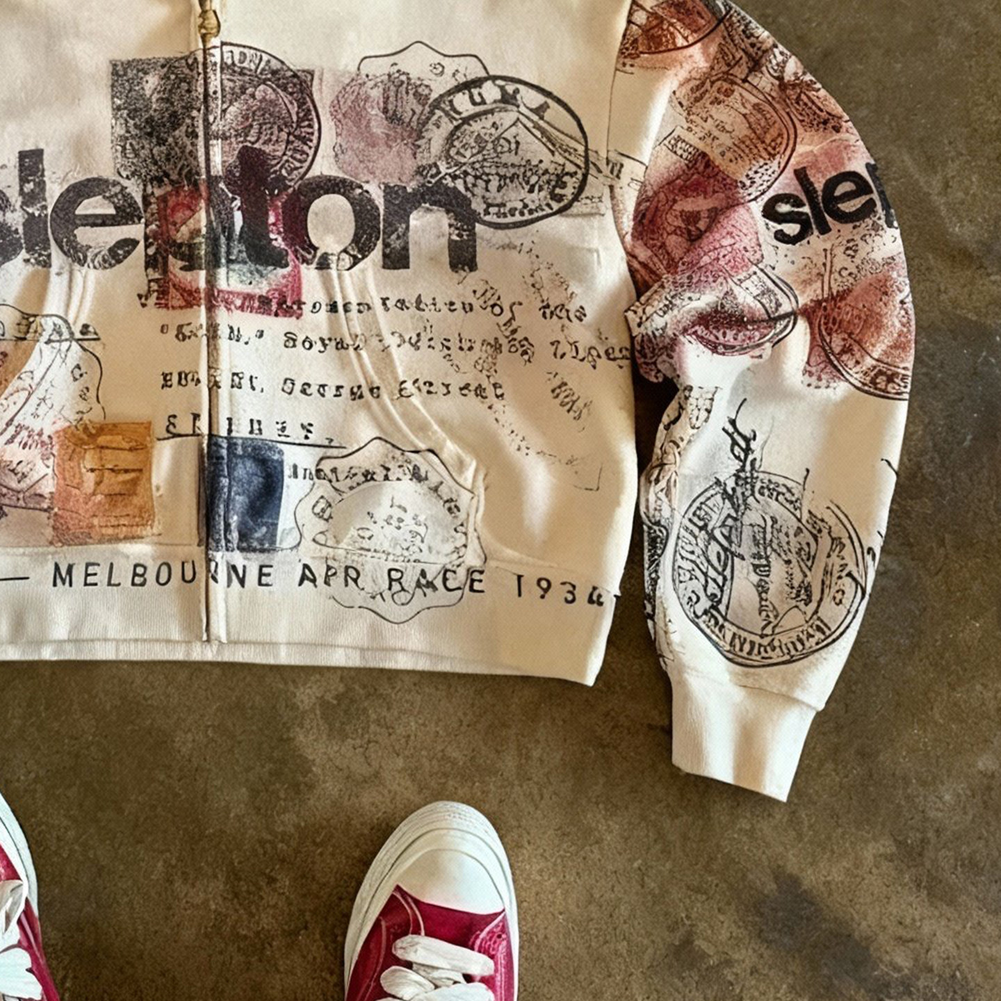 📚 y2k hoodie~美式小众涂鸦风连帽拉链卫衣女宽松休闲开衫外套潮牌