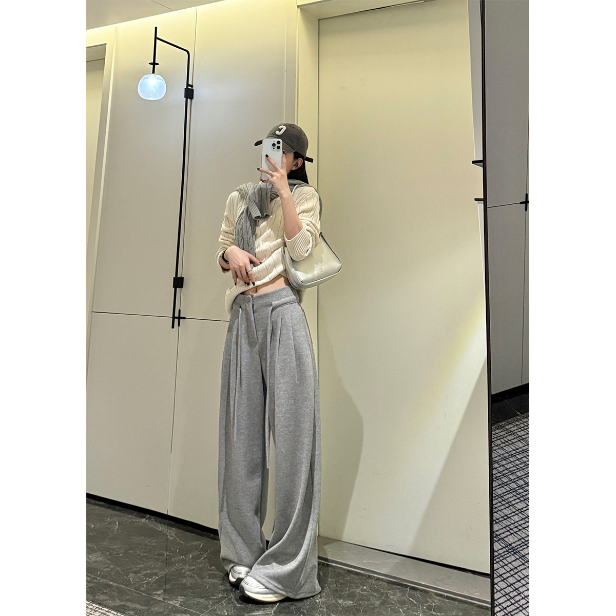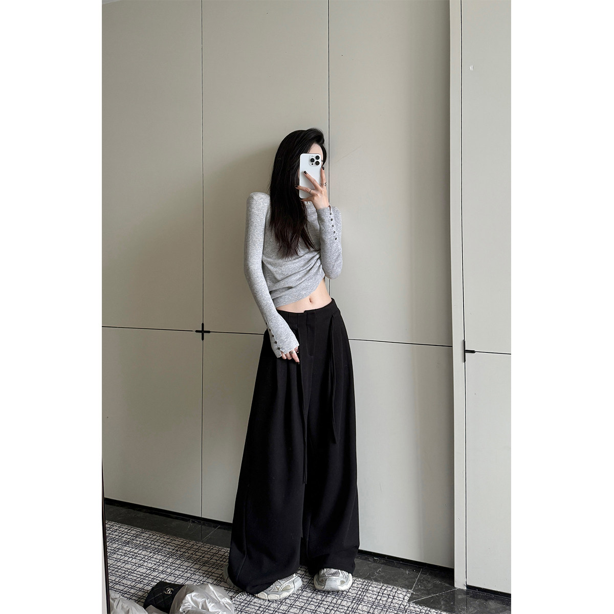 📚 PAPERLLL辛间腰带直筒裤女秋冬休闲运动卫裤垂坠感拖地阔腿长裤